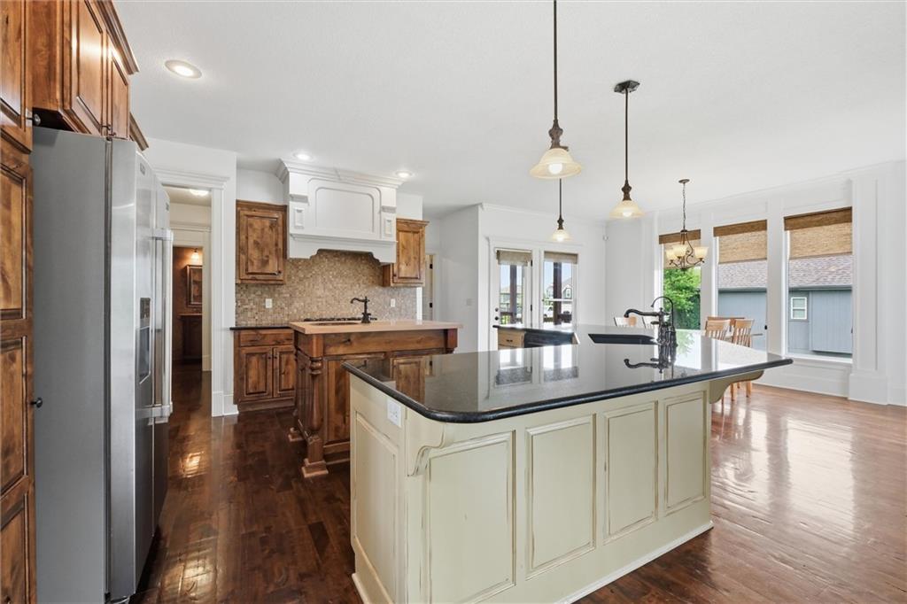 Professional Pictures Coming Soon! You do not want to miss out on this stunning traditional 2 Story Colonial home located in the highly sought after Seven Bridges community! This 4 bedroom, 3.5 bath home with a 3-car garage is sure to impress from the moment you walk in with its soaring vaulted ceilings and an abundance of natural light, complemented by beautiful hardwood floors. The main level features a spacious living room, breakfast nook, and a well appointed kitchen that boasts a large island, granite countertops, custom cabinetry, double ovens, gas range and an oversized walk-in pantry. You will also find a formal dining room and two separate office spaces, ideal for remote work or flex use. Just off the kitchen, enjoy a covered deck overlooking the large corner lot, perfect for relaxing or hosting gatherings. Upstairs, you’ll find all four generously sized bedrooms, including a luxurious primary suite with a spa like en-suite bath featuring separate vanities, a walk-in shower with body sprayers, a Jacuzzi tub, and an enormous walk-in closet. Conveniently located laundry sits just off the primary bedroom. The finished walkout lower level is an entertainer’s dream, offering a massive recreation area with built-in features and a wet bar complete with a mini fridge and dishwasher. There’s also a bathroom ready to be finished, a large workout room and ample storage space. Don't forget, residents enjoy world-class amenities including a gorgeous clubhouse, a community pool, stocked ponds, tennis courts and miles of walking trails. This home truly has it all, don't miss the opportunity to call it yours! Seller offering 1 Year Prime Home Warranty with ACHOSA. Inspections are welcome but home is being sold As-Is.