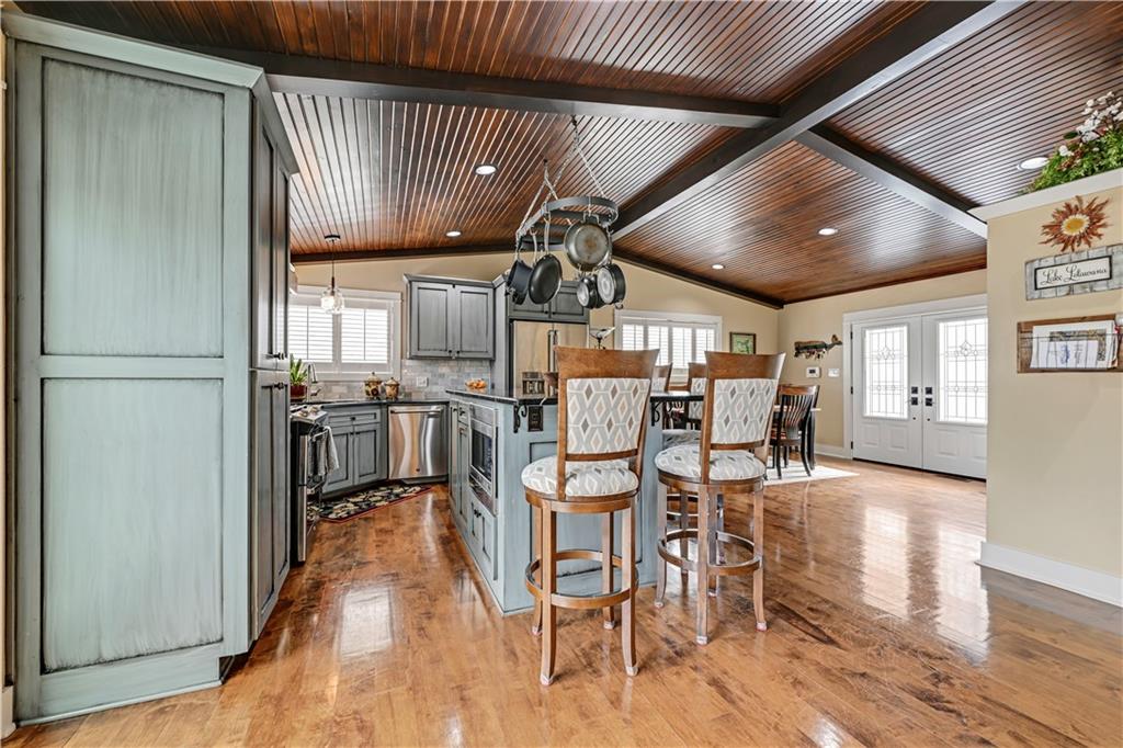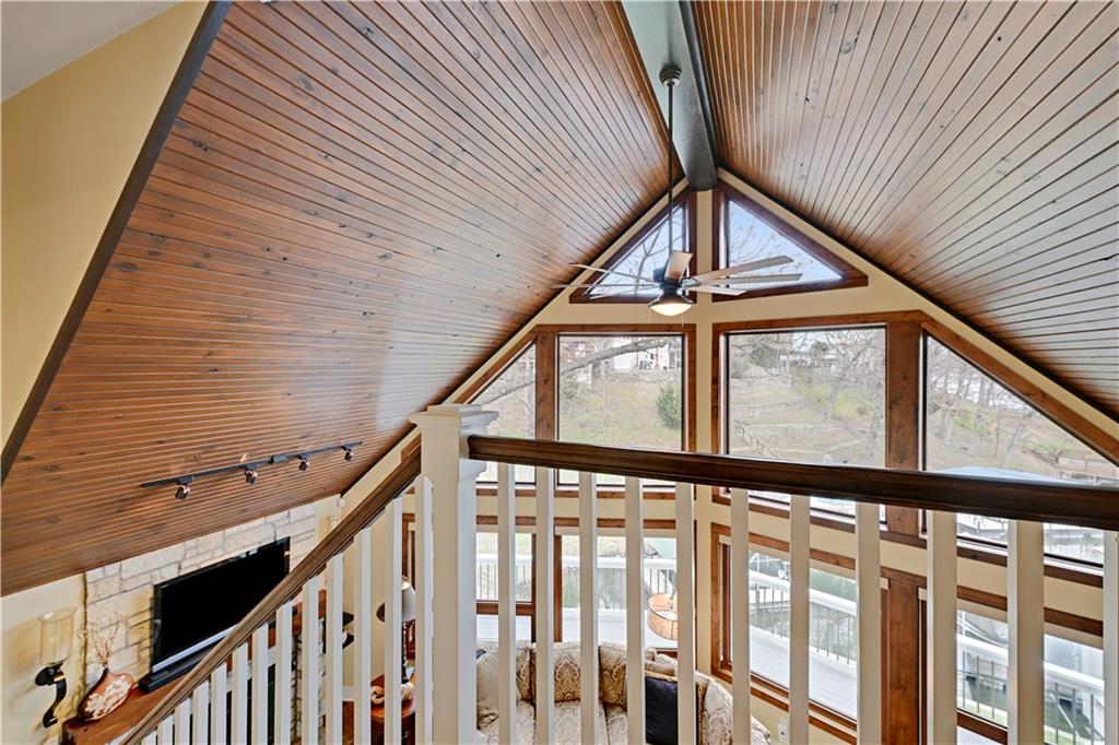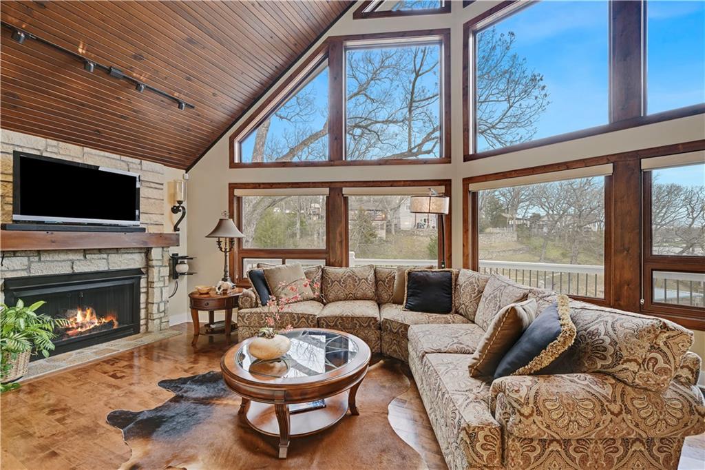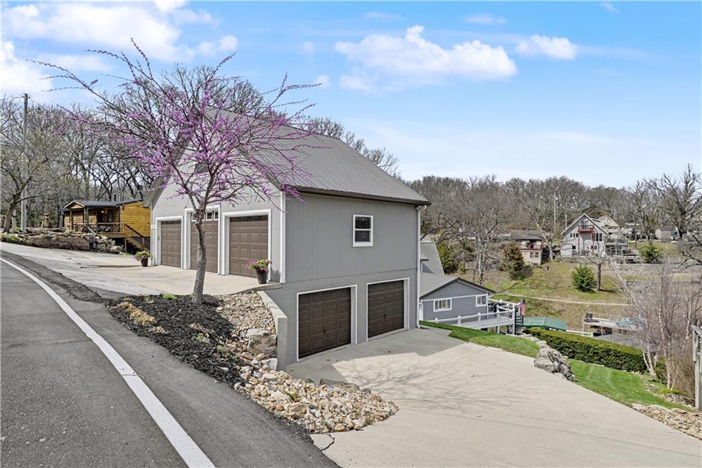 Positioned in a prime setting inside Broken Arrow Cove, 57 M Street delivers the perfect blend of comfort, access, and true Lotawana lifestyle. This is easy lake living at its best—where calm mornings ease you into the day and afternoons turn into time well spent on the water or around the grill with friends. Inside, the home offers a chic cabin feel with a spacious, well-designed layout. Inviting living areas are filled with natural light, highlighted by vaulted warm wood cathedral ceilings and a seamless flow built for both everyday living and entertaining. Expansive windows pull the outdoors in, creating a constant connection to the lake. If storage is on your list—this one delivers. With 3 prime parking spots and a rare 5-car suspended slab garage with two separate entrances provides incredible space for vehicles, lake toys, and more. Above, a loft with sweeping lake views adds even more flexibility and function. The outdoor setup is where this property truly shines. With easy access to your dock, you’re just steps from jumping on the boat, tying up after a cruise, or spending the day swimming in the cove. Enjoy it all from the large wraparound deck or covered patio—both offering front-row views of sailboat races and regattas. This quiet cove offers the best of both worlds—peaceful surroundings with quick access to the main body of the lake. Whether you're kayaking calm waters or simply taking in the scenery, nature is always part of the experience. From owls at night to deer along the shoreline and the occasional bald eagle or blue heron passing through, it’s a setting that never gets old. With convenient access to Hwy 7 and 50, and located in the heart of the Lake Lotawana community, this isn’t just a home—it’s a lifestyle. Ample parking with three dedicated spaces provides plenty of room for guests. From lake days to community events and year-round enjoyment, 57 M Street is your opportunity to experience everything Lotawana has to offer.