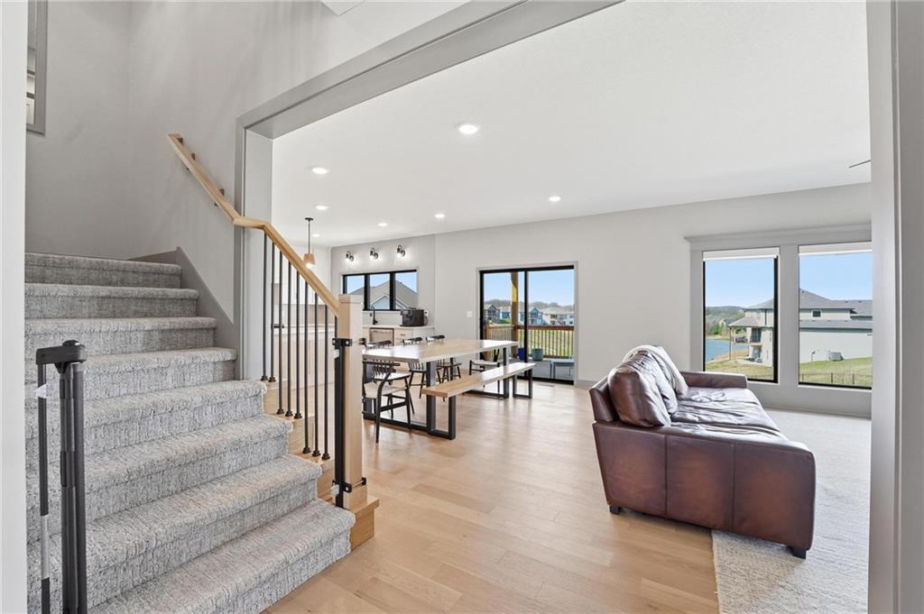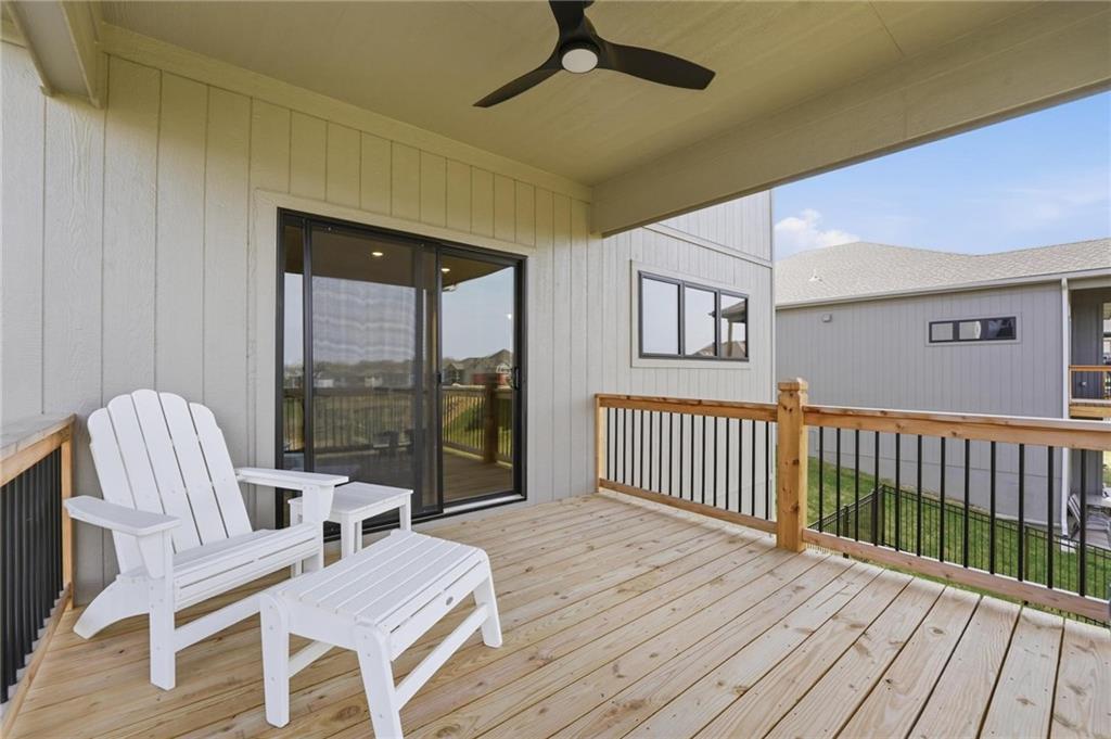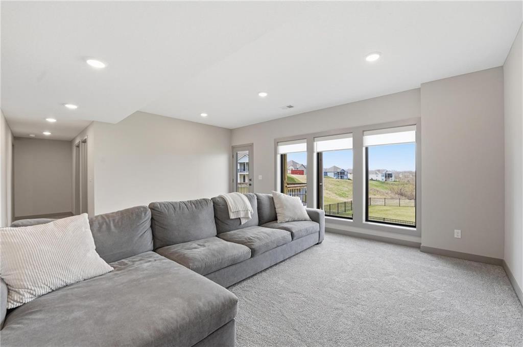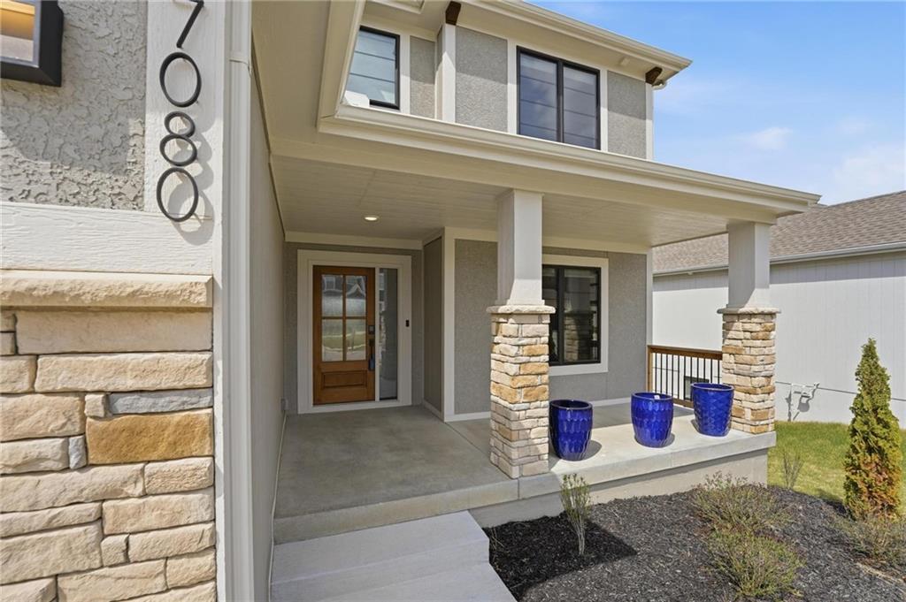 Step into this better-than-new home that just feels right the moment you walk in! The Sycamore by Hearthside Homes brings together clean design, warm finishes, and a layout that truly lives well. Sunlight fills the kitchen, highlighting the hardwood floors and drawing your eye to oversized windows at the sink. The island is ready for hosting, paired with quartz countertops, a statement range hood, and a walk-in pantry that keeps everything organized and within reach. The living room flows effortlessly from the kitchen, centered around a tiled fireplace with modern built-ins that add both style and function. Just off the main living space, the office makes working from home feel elevated with classic wainscoting that adds character and a polished look. The everyday entry from the garage is thoughtfully designed with a drop zone to keep life running smoothly. Step out from the dining area onto a two-level covered deck that overlooks greenspace, creating the perfect setup for relaxing evenings or hosting friends with a view. Irrigation system has already been installed. Upstairs, the primary suite feels like a private retreat with a walk-in shower, soaking tub, dual vanities, and a spacious walk-in closet. The walkout lower level adds even more versatility with a HUGE suspended garage for tons of storage, a fifth bedroom, full bath, and a large rec room ready for whatever you need. Located in unincorporated Platte County and served by Park Hill Schools, this community offers a pool, clubhouse, and walking trails that make it easy to enjoy where you live. Brand new fence! Window treatments have been installed as well as a humidifier. Nothing to do here except move right in!