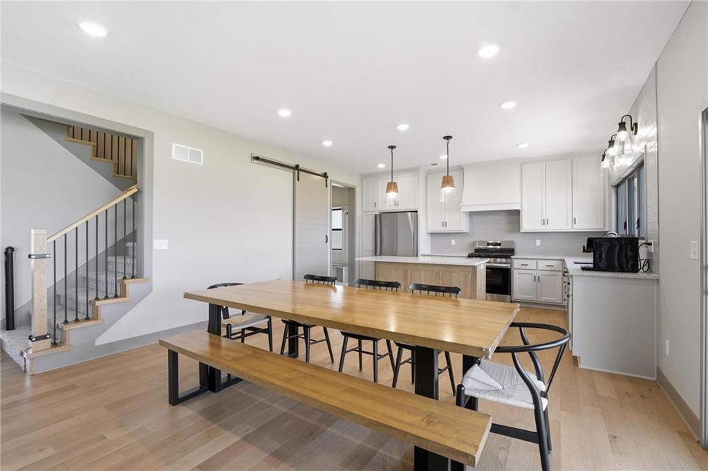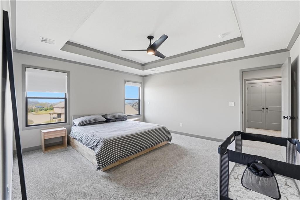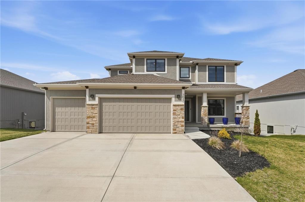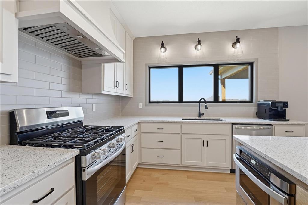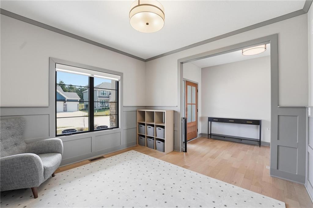 Step into this better-than-new home that just feels right the moment you walk in! The Sycamore by Hearthside Homes brings together clean design, warm finishes, and a layout that truly lives well. Sunlight fills the kitchen, highlighting the hardwood floors and drawing your eye to oversized windows at the sink. The island is ready for hosting, paired with quartz countertops, a statement range hood, and a walk-in pantry that keeps everything organized and within reach. The living room flows effortlessly from the kitchen, centered around a tiled fireplace with modern built-ins that add both style and function. Just off the main living space, the office makes working from home feel elevated with classic wainscoting that adds character and a polished look. The everyday entry from the garage is thoughtfully designed with a drop zone to keep life running smoothly. Step out from the dining area onto a two-level covered deck that overlooks greenspace, creating the perfect setup for relaxing evenings or hosting friends with a view. Irrigation system has already been installed. Upstairs, the primary suite feels like a private retreat with a walk-in shower, soaking tub, dual vanities, and a spacious walk-in closet. The walkout lower level adds even more versatility with a HUGE suspended garage for tons of storage, a fifth bedroom, full bath, and a large rec room ready for whatever you need. Located in unincorporated Platte County and served by Park Hill Schools, this community offers a pool, clubhouse, and walking trails that make it easy to enjoy where you live. Brand new fence! Window treatments have been installed as well as a humidifier. Nothing to do here except move right in!