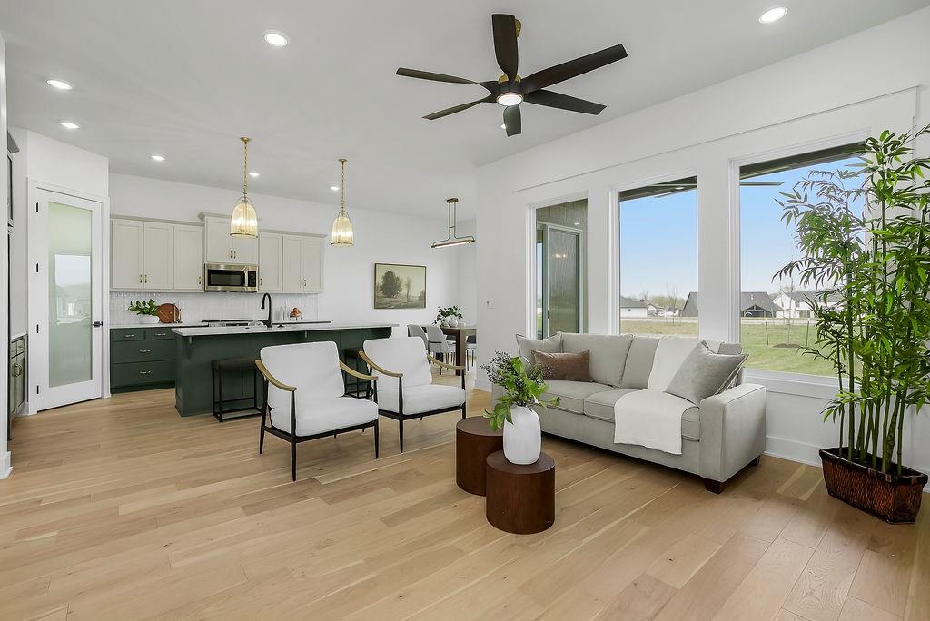 Welcome to Hoot Owl Acres—featuring this stunning model home with a durable, weather-resistant Tesla solar roof! The “Toby” plan by B & B Custom Homes offers a spacious open-concept layout designed for both everyday living and entertaining. The kitchen is a standout feature, complete with a large island, generous cabinetry, and a walk-in pantry. The main level features a split-bedroom design, providing a private primary suite with a beautifully tiled custom shower, private water closet, and convenient access from the walk-in closet directly to the laundry room. From there, you’ll flow seamlessly into the mudroom and garage entry—because real life needs smart design. Step outside to the covered patio—perfect for morning coffee or winding down in the evening. The finished lower level expands your living space with two additional bedrooms, a full bathroom, a spacious rec room, and a versatile bonus area ideal for a home gym, office, or game room. With thoughtful design, quality craftsmanship, and incredible value, this home truly delivers space where it matters most.
