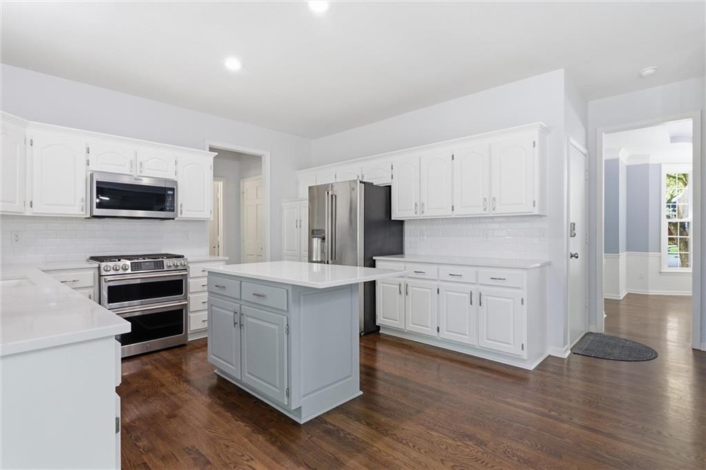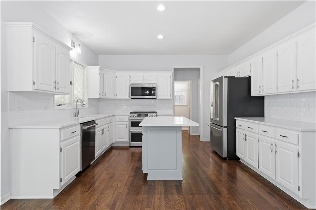 4-Bedroom Home in Briarwood - Completely Updated Welcome to this meticulously maintained & updated 2-story home in the highly coveted Briarwood neighborhood of Olathe. Boasting a rare 3-car garage and situated just two doors away from Tomahawk Elementary, this move-in ready home offers the perfect blend of modern luxury and peace of mind. Major upgrades include newer windows and a newer HVAC system, ensuring year-round comfort and energy efficiency. Step inside to a bright, open floor plan featuring soaring high ceilings and newly refinished hardwood floors. The gourmet-inspired kitchen is a standout, complete with custom white cabinetry, elegant quartz countertops, and high-end stainless steel appliances including a gas range. The primary suite is a private retreat, featuring a fully remodeled, spa-like bathroom with a spacious walk-in shower, dual vanities, and a custom walk-in closet. With a main-floor laundry room for added ease, this layout is designed for modern living. The finished basement expands your living space, including a large recreational room, a custom wet bar, and a dedicated flex room perfect for a home gym or private office. Outside, enjoy low-maintenance Hardie Board siding and a fully fenced backyard, featuring an expansive deck and patio designed for seamless indoor-outdoor entertaining. Ideally located in a prime Olathe school district, this turnkey home offers the upgrades buyers want most. Schedule your private showing today!