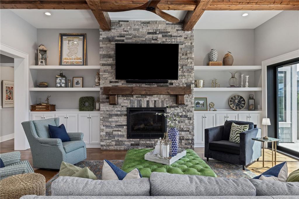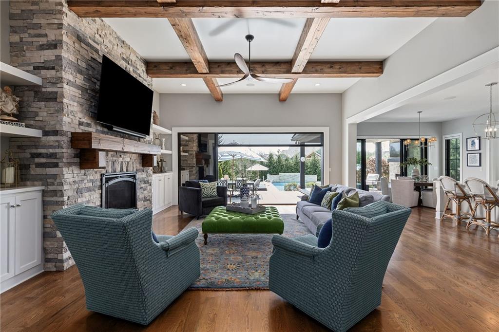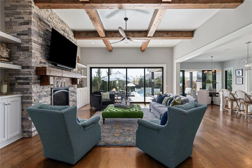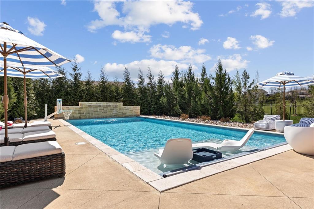 Your DREAM HOME in Mills Ranch in South Overland Park. This estate home offers a truly one-of-a-kind setting. Extensive landscaping ensures incredible privacy on the almost full acre lot adjoining greenspace—a rare find in a suburban neighborhood! Gorgeous 1.5 story home built in 2019 by Todd Hill Homes with high-end design & luxury finishes. Recent upgrades include ALL brand-new, top-of-the-line Pella windows, sliding doors, new carpet, & fresh designer wallpaper in the powder room & primary bedroom. The primary bedroom is a true retreat with ensuite bath featuring a deep soaker tub, & two walk-in closets recently upgraded with custom California Closets. The kitchen features beautiful white cabinets, oversized fridge, & walk-in pantry. Tucked away on this floor is a private office, a spacious laundry room, and a convenient mudroom (or "drop space") with built-in cabinets to hide all the day-to-day "stuff." Get ready to host—this house is perfect for entertaining! Enjoy seamless indoor/outdoor living with massive panoramic sliding doors off the living room. Step outside to the lanai with fireplace, terraced patio, & a top of the line 20x40 saltwater pool! It has all the bells and whistles: a lounge pad, water features, LED lighting—everything you could want! Upstairs, you'll find three spacious bedrooms, each with its own full bathroom. Also upstairs is a massive bonus room that you can use for anything—a second office, game room, or kids' playroom. Finished lower level includes two more bedrooms, 1.5 baths, a custom media wall, pool table area, & seating for everyone to catch the big games. The sleek wet bar features illuminated liquor shelves, a bev fridge, dishwasher, & marble bar that seats six. Don't miss the large, mirrored workout room. This is truly an extraordinary property that guarantees a lifestyle of absolute comfort and luxury. It sits on a quiet cul-de-sac surrounded by other exceptional homes. Don't miss out—schedule your private showing today!