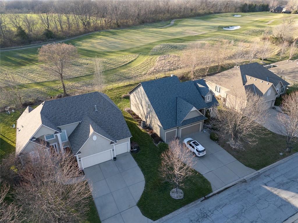 Experience the ultimate maintenance-provided lifestyle in this move-in ready 1.5-story villa perfectly positioned along the 13th fairway of the prestigious Prairie Highlands Golf Course. This thoughtfully designed open-concept floor plan features a rare main-level primary suite with laundry access off the kitchen, a modern kitchen and hearth room, and a formal living area ideal for entertaining. The versatile second-level loft—featuring brand new carpet—serves as a perfect dedicated home office or flex space, while the finished lower-level family room provides additional square footage with a built-in wet bar. Exceptional peace of mind comes with big-ticket recent upgrades, including a newer roof, HVAC system, and water heater. Enjoy serene golf course views from your private deck and a backyard equipped with an underground pet fence. Located in the highly-rated Olathe School District near Lake Olathe Park, this turn-key villa includes a comprehensive HOA covering snow removal, mowing, aeration, fertilization, and sprinkler maintenance, plus access to the community pool, clubhouse, and neighborhood restaurant. Above-ground fences are restricted to maintain the manicured grounds of this premier golf course community. Experience luxury, comfort, and a true lock-and-leave lifestyle in this exceptional Prairie Highlands home!