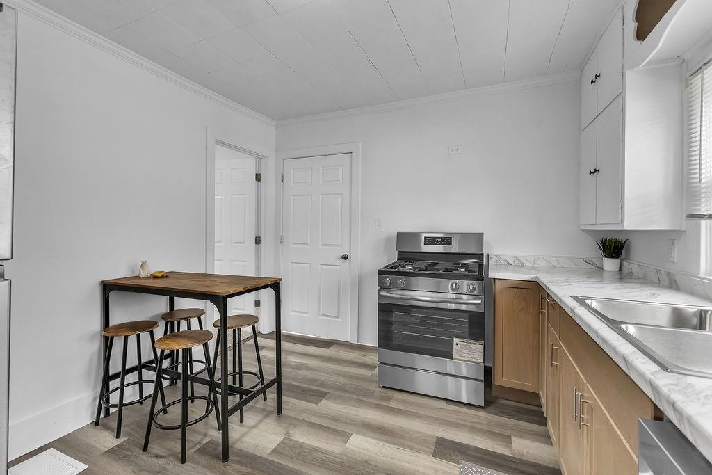Welcome home to this charming and completely remodeled gem - the perfect place to plant your roots! From the moment you arrive, you'll appreciate the level lot, off street parking, and great curb appeal. Step inside to discover a warm and inviting living room, an updated kitchen featuring stainless steel appliances, 3 sun filled bedrooms, and 1 full bath. The delightful sunroom is the perfect spot for your morning coffee, and main floor laundry adds everyday convenience. Best of all, the big-ticket items are already taken care of, including a brand new roof and gutters, A/C unit, water heater, and electrical panel, mean you can move in with total confidence. A full unfinished basement offers incredible potential to grow into the space and make it your own. This is truly move-in ready living at its finest. Don't let this one slip away!