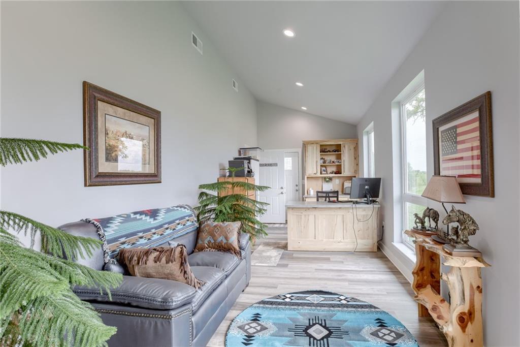 Discover the convenience of this picturesque estate located just off exit 40 in Lathrop MO. This newly constructed home offers over 4400 square feet of livable space and just over 5 acres with and livestock facilities. Ideal for business owners, large families, or those wanting a quick commute to Kansas City or the airport. The stunningly designed home offers 4 bed, four bathrooms, two fireplaces and a massive great room perfect for family living and entertaining guests. Inside there is a blend of marble and high end flooring that adds elegance and durability throughout. The heart of the home features a state of the art kitchen with an 11 foot custom granite island, walk in pantry, and personalized kitchen cabinetry. The expansive concrete driveway and parking pad outside the 4 car garage provides extra parking for additional guests. Additionally the main floor offers oversized hallways and doorways making it completely handicapped accessible. Outside the home there is a 30x40 barn with a fully fenced paddock with water spigots already suitable for livestock or horses. Additional highlights include a vault style safe room, a dedicated office space and an integrated Generac backup generator, ensuring your home remains comfortable and functional in any situation. This property seamlessly combines luxury security and practically practicality making it a true sanctuary. homeowner is also willing to sell adjoining acreage for an cost. Don't miss the opportunity to own this remarkable estate just 30 minutes from Kansas City and the MCI Airport. Schedule your showing today Inexperience all this stunning home has to offer!