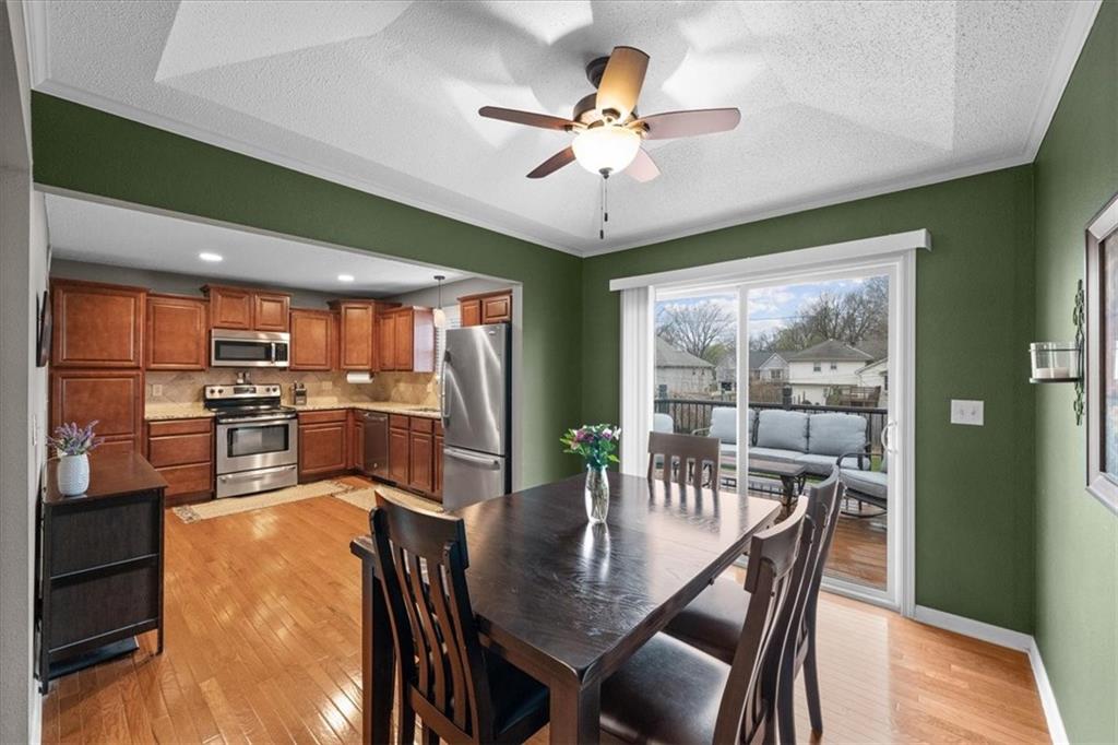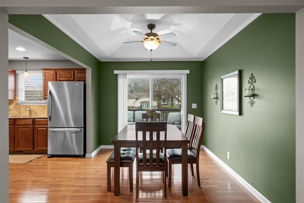 Welcome to this well-maintained home in the highly sought-after Shawnee Mission Northwest School District! Thoughtfully updated over the years, this property offers peace of mind with major improvements already completed and plenty of space to make your own. The exterior has been refreshed with newer paint and features a new high-impact shingle roof and gutters (July 2024), providing both durability and favorable insurance options. Outdoor living is enhanced by a spacious patio/deck, perfect for entertaining or relaxing evenings at home, all overlooking a spacious backyard with room to play, garden, or unwind. Inside, you'll find a bright, inviting interior with freshly painted extra bedrooms (March 2026). Bathrooms have been tastefully upgraded (February 2024) with new vanities, toilets, and a modern shower door, offering a clean, updated feel. The kitchen is both functional and stylish, featuring ample storage, stone countertops, and stainless steel appliances—all of which stay with the home—making it truly move-in ready. Major mechanical updates include a newer Lennox HVAC system (July 2022) and recent air duct cleaning (January 2026), helping ensure comfort and efficiency year-round. Additional improvements include an installed channel drain system in the driveway (November 2025) and exterior back door trim replacement and paint. Located in a prime Shawnee location with convenient access to shopping, dining, Ray Marsh Elementary and highways, this home combines thoughtful updates, functional living, and an excellent location. Don’t miss your opportunity to own a well-cared-for home with big-ticket items already taken care of!