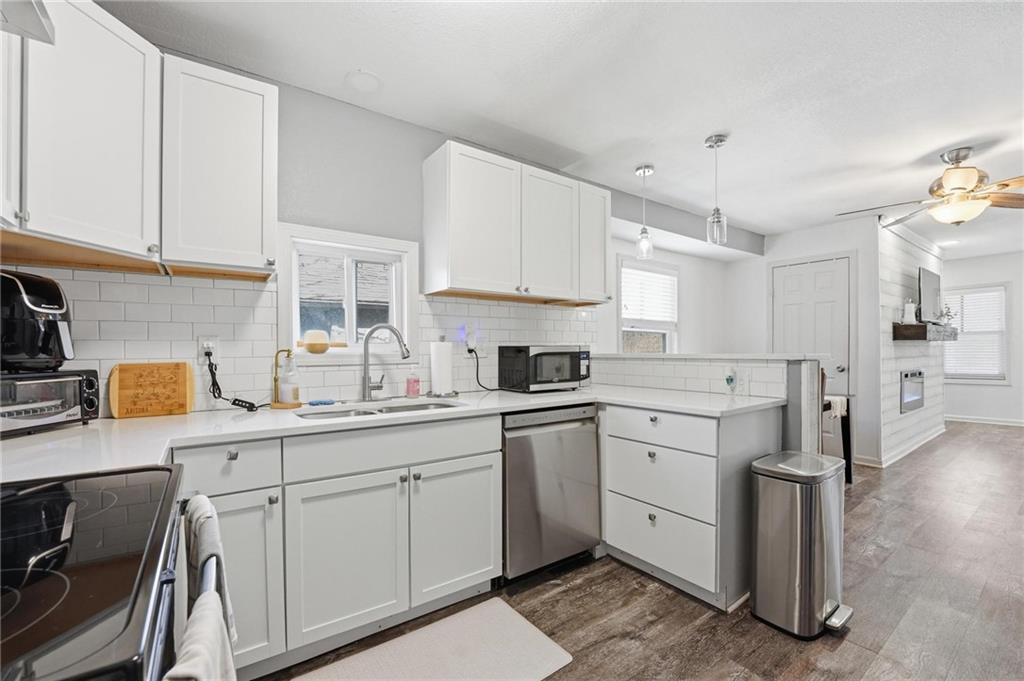 Beautifully remodeled 2-bedroom, 2 full bathroom home with inviting spaces inside and out! The large front porch offers the perfect spot to relax and unwind. Inside, the open floor plan maximizes space while maintaining a warm, cozy feel. The updated kitchen features shaker-style cabinetry, custom solid surface countertops, stainless steel appliances and a stainless vent hood. Both full bathrooms have been thoughtfully updated with modern finishes. Enjoy the convenience of main-level laundry, eliminating trips to the basement. The private primary suite is located on the second floor and includes a double vanity and a spacious shower. With updates throughout, this home is truly move-in ready. Just bring your furniture and make it yours!