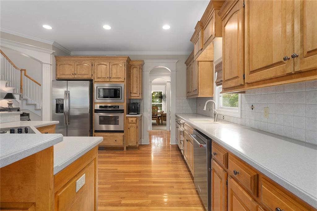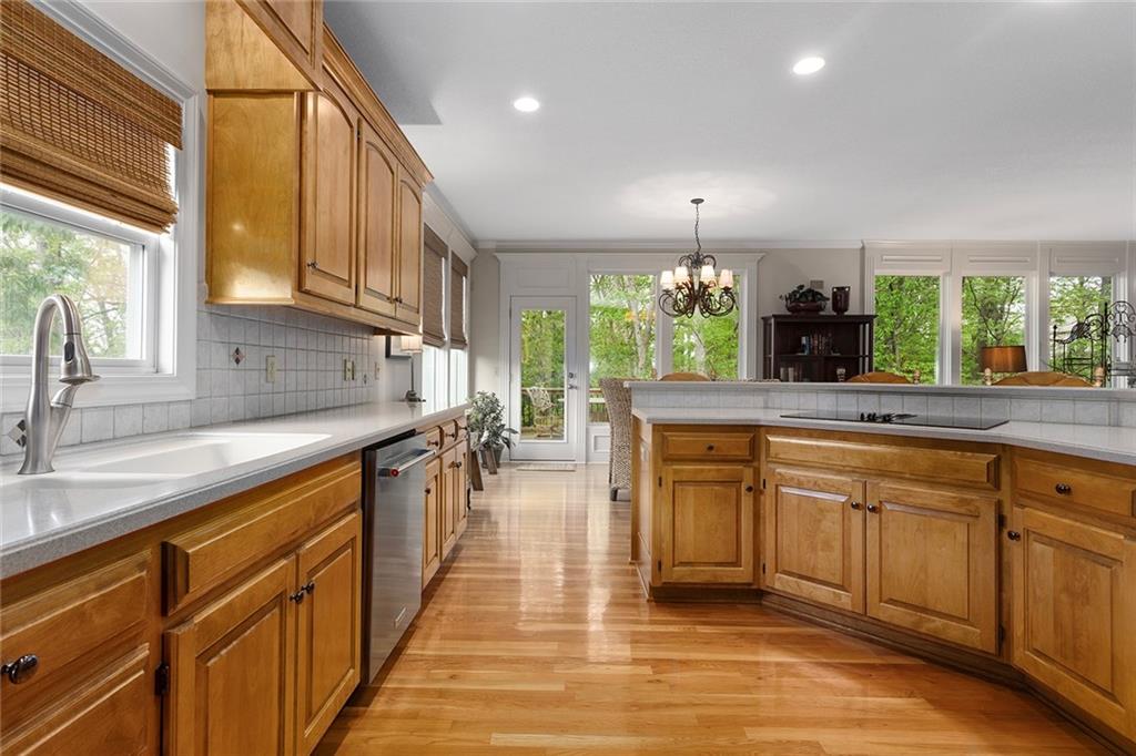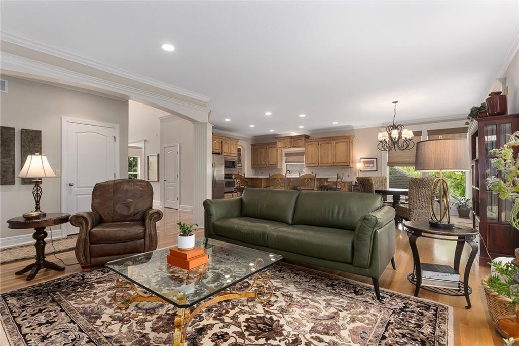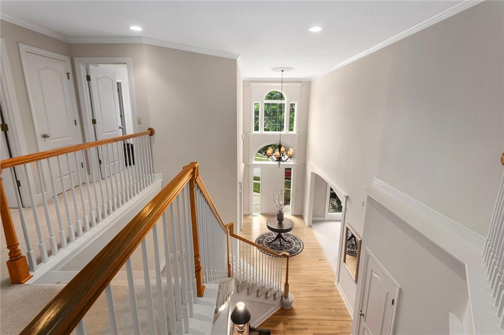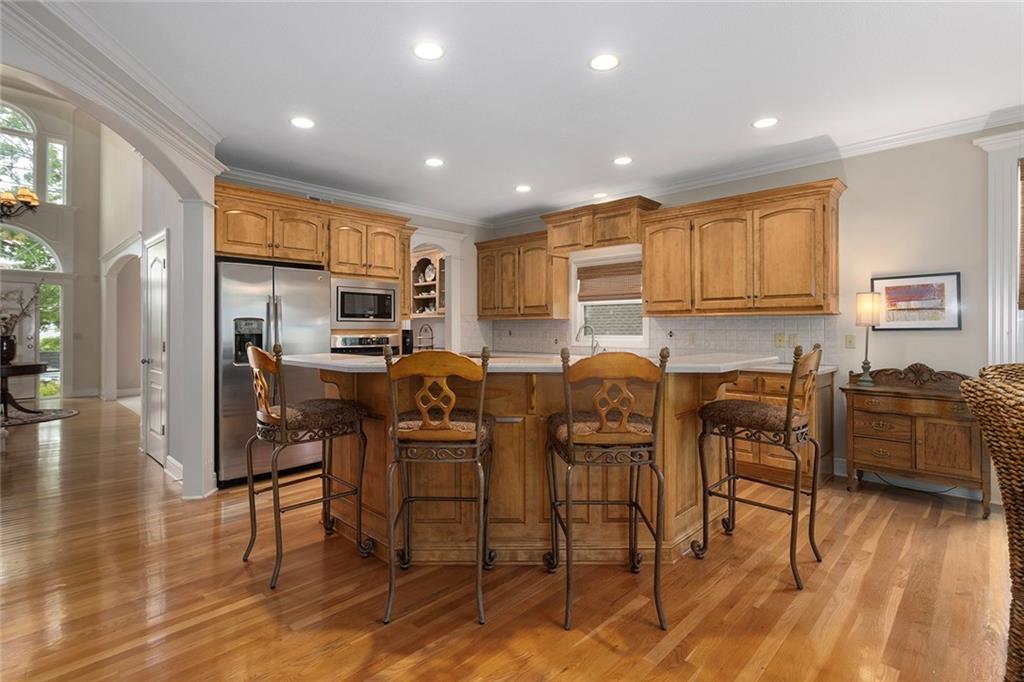 Stunning one-owner custom-built 1.5-story home backing to heavily treed greenspace, offering privacy and picturesque views! With over 4,000 sq ft, this thoughtfully designed home features a bright, open floor plan perfect for everyday living and entertaining. The impressive two-story entry showcases upgraded trim work throughout and opens into a spacious great room complete with built-ins and a cozy fireplace. The gourmet kitchen is a dream, featuring a large walk-in pantry, butler’s pantry, and seamless flow into the formal dining room. The main-level primary suite is a true retreat with a vaulted ceiling, wall of windows, and generous space to unwind. A first-floor office adds convenience and flexibility. Upstairs, you’ll find a spacious loft area and generously sized secondary bedrooms—all with walk-in closets. Additional highlights include 3.5 baths, an oversized laundry room, and a huge unfinished basement ready for your personal design and expansion. Located in The National Golf Club community in the heart of Platte County, this home also features a brand new architectural shingle roof. Don’t miss this exceptional opportunity to own a beautifully maintained home in a highly sought-after location! This home has been meticulously maintained.