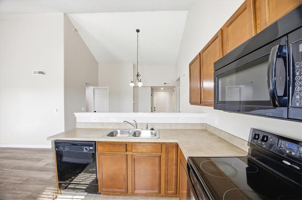 New AC, furnace, washer, and dryer! Step into a home that instantly lifts your mood the moment you walk through the door. This stunning corner-unit condo welcomes you with soaring vaulted ceilings and an abundance of natural light that pours in through oversized windows, framing peaceful views of lush green trees. Every inch of this space feels open, airy, and inviting—like your own private retreat above it all. Imagine starting your mornings with coffee on the incredible, oversized balcony—your own outdoor sanctuary—complete with additional storage and surrounded by nature. Whether it’s quiet sunrises or unwinding at the end of the day, this space truly sets the tone for everyday living. This rare find showcases a new AC, furnace, washer, and dryer for the benefit of its new owner. The cathedral ceilings create a sense of grandeur, while thoughtful features like easy-to-clean pull-out windows, a convenient breakfast bar, and a new in-unit washer and dryer make daily life effortless. With no neighbors above, you’ll enjoy an added level of peace and privacy that’s hard to come by. You’ll also appreciate the efficiency of all-electric utilities, keeping costs surprisingly low, and the added reliability of underground power lines. Nature lovers will be delighted by the serene setting, where deer and other wildlife can often be spotted just beyond your windows. Perfectly positioned, this unit offers unbeatable convenience—located just across the parking lot from the mailboxes and only a short stroll down N Oakley to a spacious, HOA-maintained dog park, where your furry friend will frolic in the grass as you relax, soaking up the sun while admiring the greenspace surrounding you. Schedule your showing today and be one of the first to experience this move-in-ready, highly sought-after Brighton Crossings Commons condo, 3C!