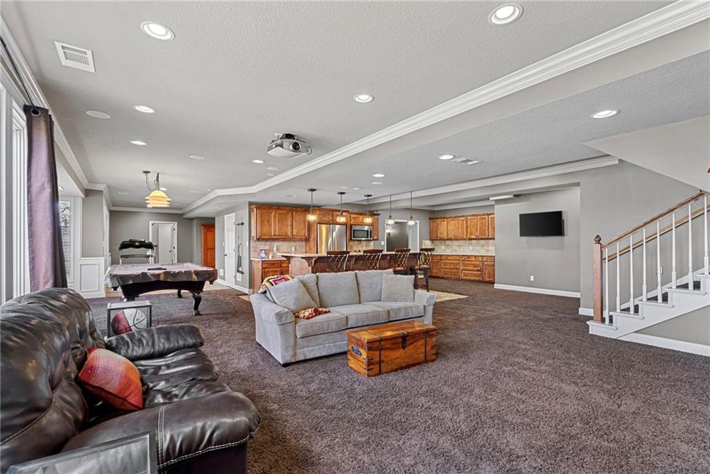 This incredibly spacious 2-story home sits on a wonderfully private, treed lot that backs to wooded greenspace and parkland in sought-after Winterset Park. With 5 bedrooms, 4.5 baths and over 5000 SF of living space, inside or out you’ll never run out of ways to live life to the fullest no matter what your lifestyle needs may be. The main level offers both open spaces and cozy places that easily accommodate gatherings of any size. With stunning refinished hardwoods, a shared great room/hearth room fireplace, and walls of windows looking out over that beautiful, wooded backdrop, you’ll love the warm and inviting vibe throughout. Don’t forget to mosey on out to the composite deck among the trees! The current owners created an amazing mutli-level outdoor oasis when they fully replaced the old deck. Back inside, there’s also an office with private garage access making work life at home a breeze. And the gorgeous flex room that greets you when you step inside the front door makes for a perfect music room, formal dining room, private sitting room or whatever your heart desires. Upstairs, you’ll find a huge loft along with three generous guest rooms and 2 full guest baths. But the crown jewel is the primary suite. A true retreat with sitting room, 3 closets (yes, 3!), and an extraordinary spa-like bath with steam shower and soaker tub. Seriously, you may never leave! Want more? The finished walk-out lower level is the stuff that dreams are made of. This is no DIYers finish! Incredible wet bar, huge family room, media room, wine cellar, area for game table and workout equipment, plus a conforming 5th bedroom and fantastic 4th full bath. This will quickly become the place where everyone wants to hang out! Then step out to the covered lower-level dry deck and your relaxing hot tub. And the oversized 3-car garage with epoxied floor is the perfect place for all your toys. Now you’re living the sweet life!