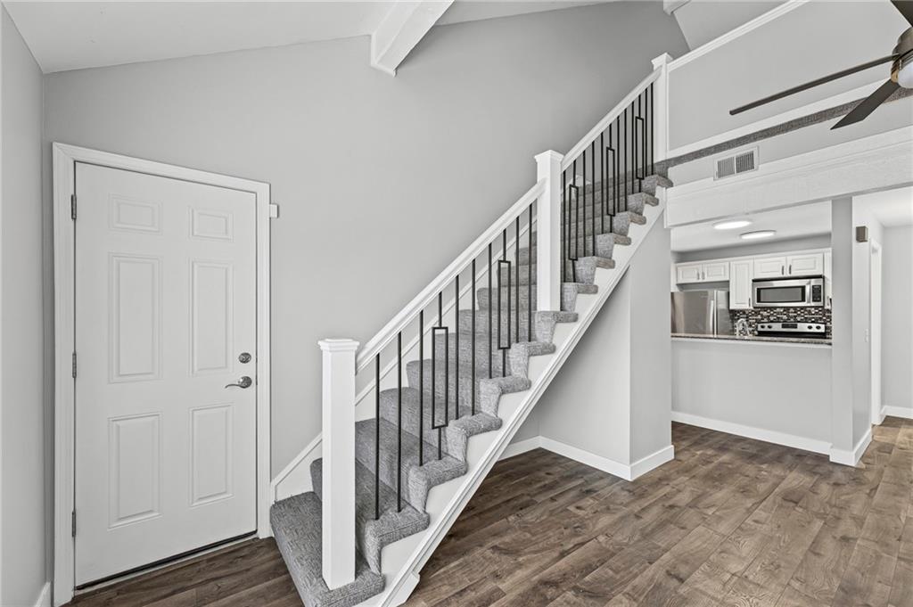 Move-In Ready Condo in Deerwalk – Prime Shawnee Location! Completely refreshed and ready for its next owner, this stylish condo features fresh interior paint, new patterned carpet on the stairs and loft bedroom, and durable LVP flooring throughout the main level. The kitchen is equipped with granite countertops and stainless steel appliances, opening to a vaulted great room with a cozy fireplace—perfect for relaxing or entertaining. The main-level bedroom offers access to a private balcony, also known as a “martini deck,” ideal for enjoying your morning coffee or evening unwind. Additional highlights include a stackable washer and dryer (included), covered carport parking, and a basement-level storage unit for added convenience. Located just off Johnson Drive, you’ll enjoy easy highway access, top-rated Shawnee Mission schools, and close proximity to some of Shawnee’s newest restaurants, breweries, and local hotspots.