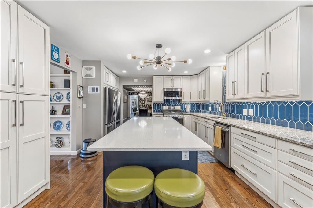 Is there a 4-bed ranch in Excelsior Springs with acreage, modern updates, and space to entertain? This beautifully updated home offers over 3,500 finished sqft on the main level, set on 1.5 acres with expansive indoor living, curated outdoor spaces, and rare features including a 3-car garage and 30x30 barn. Welcome to this 4-bed ranch home in Excelsior Springs under $600K, a fully updated mid century modern retreat designed for both everyday comfort and elevated entertaining. Spanning over 3,500 sqft on the main level, the home features a newly expanded kitchen with quartz countertops, new cabinetry, updated appliances, and a large island that opens seamlessly to the living room with a wood burning stove. A generous dining room accommodates large gatherings, while the all seasons room doubles as a greenhouse and opens to an expansive patio and deck. The main level also includes a laundry room with half bath and a versatile bonus room ideal for an office, craft space, or study. The private primary suite offers a spacious bath and abundant closet space, complemented by three additional large bedrooms and a total of 3.5 baths. The unfinished basement provides excellent storage and includes a secondary kitchen for canning or extended cooking needs. Situated on 1.5 acres, the outdoor experience is unmatched with lush, resort style front landscaping, a trellis seating area, and a backyard oasis featuring multiple patios and decks, walking trails, garden beds, a pond, and a chicken coop. Additional highlights include a 3-car garage and a 30x30 barn for equipment, hobbies, or extra storage. This 4-bed ranch home in Excelsior Springs under $600K offers a rare blend of modern updates, acreage, and lifestyle flexibility.