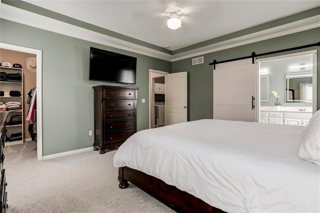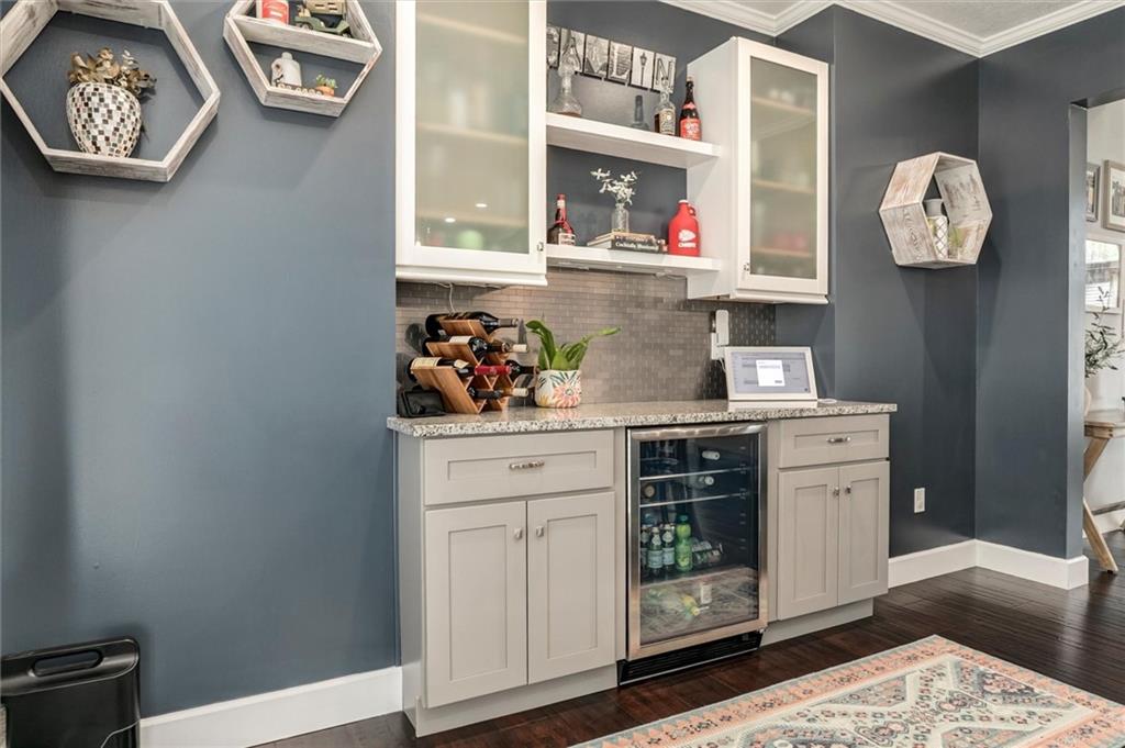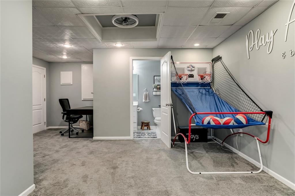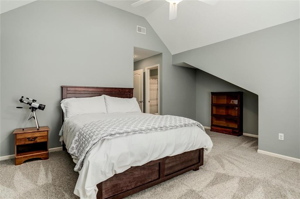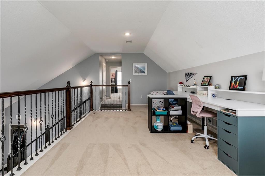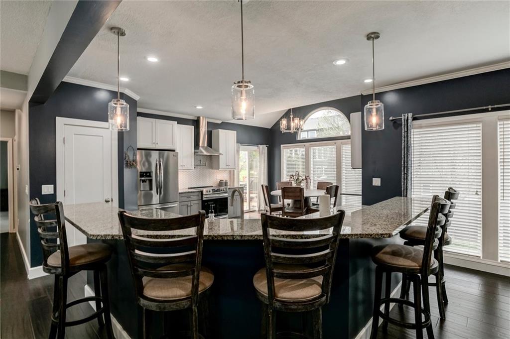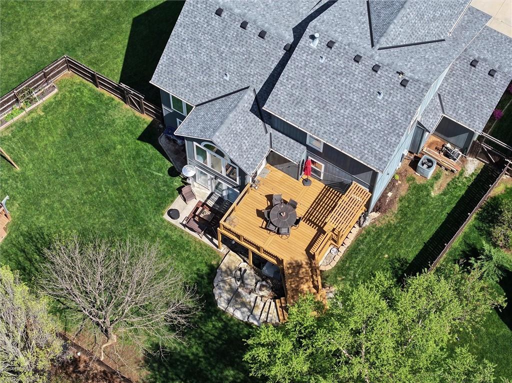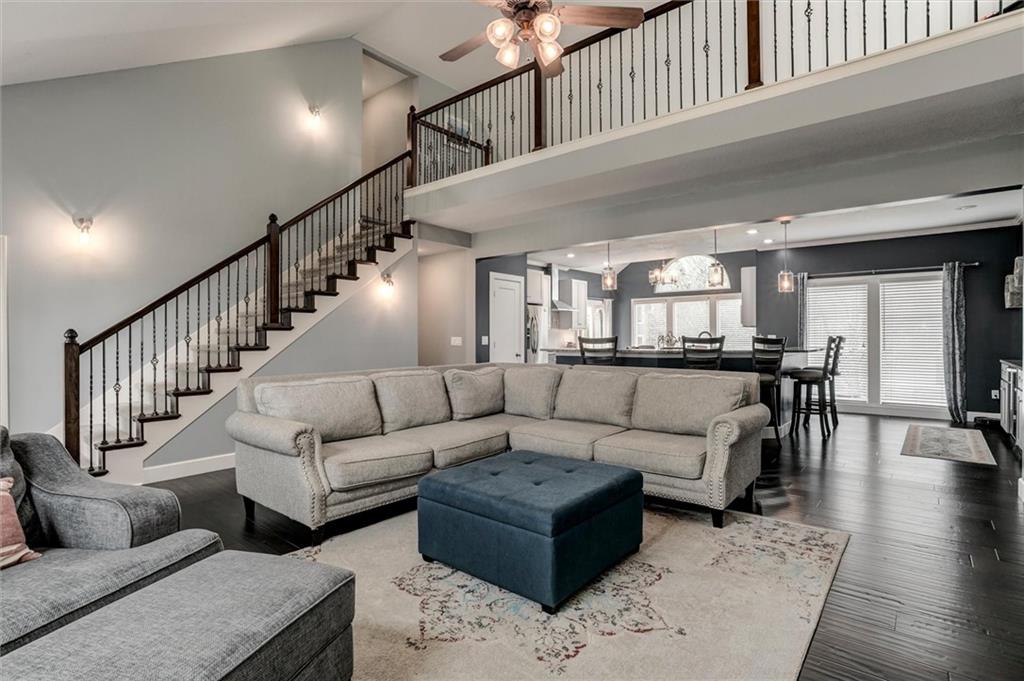 Welcome to this beautifully maintained 4 bed, 4.5 bath home tucked away on a quiet cul-de-sac in Shawnee. Thoughtfully designed with a main-level primary suite and main floor laundry, this home offers the perfect blend of comfort and functionality. The light-filled living room features soaring ceilings, a stunning fireplace, and seamless flow into the updated kitchen with granite counters, stainless appliances, and generous island seating ideal for everyday living and entertaining. The adjacent dining area opens to a spacious deck overlooking the fenced backyard. The main-level primary suite offers a private retreat with a spacious bath and walk-in closet, while the upstairs bedrooms and loft provide ample space and flexibility. The finished walkout basement is an entertainer’s dream, featuring a large rec area, full bath, and direct access to the outdoor kitchen, patio and backyard. A massive storage room and workshop space add incredible utility. Car enthusiasts or golf lovers will appreciate the 3rd car garage, currently transformed into a golf simulator room—seller is willing to include or convert back prior to closing. This home checks every box with space, upgrades, and a prime cul-de-sac location! All that's left to do is move in!