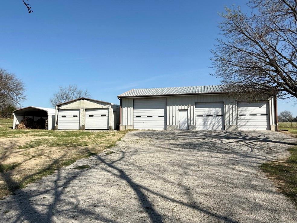 Country living meets business opportunity on this versatile 2.9-acre property just under a mile from the city limits of El Dorado Springs, MO. With a spacious 1.5 story earth contact home offering 2,235 finished sq ft, this property is ideal for those seeking a rural lifestyle with room to work & grow. The home features 4 very spacious bedrooms & 3 baths along with a 2-car attached garage. Inside, you’ll find a comfortable layout with plenty of closet space & easy-access attic storage. The living room showcases a vaulted ceiling & an attractive brick woodburning fireplace, creating a warm & inviting focal point. What truly sets this property apart is the impressive collection of outbuildings—perfect for hobbyists, business use, or a working homestead. A 30’x50’ 3-bay mechanic’s garage is fully equipped with concrete floor, electric, lighting, woodburning stove, window A/C, & ½ bath, with bay doors measuring 9’x9’, 10’x7’, & 9’x7’. A second 30’x50’ 3-bay workshop features concrete floor, electric, lighting, gas wall heater, window A/C, & ½ bath, with bay doors of 12’x11’ & (2) 9’x9’ openings. Additional buildings include a 30’x40’ pole barn with electric & lighting (ideal for equipment, boats, or ATVs), a 25’x30’ enclosed 2-car carport with overhead doors, an additional 2-car carport currently used as a woodshed, 2 storage sheds, & a chicken coop. The property is well laid out with a circle drive serving the home & main buildings, plus a separate private drive to the mechanic’s garage. Outdoor features include 2 garden plots, a large front yard with mature trees, & a spacious side yard suitable for small livestock. Whether you're looking to establish a homestead, create a farmette, or operate a small business—especially in vehicle repair or carpentry—this property offers the space, functionality, & location to make it happen.
