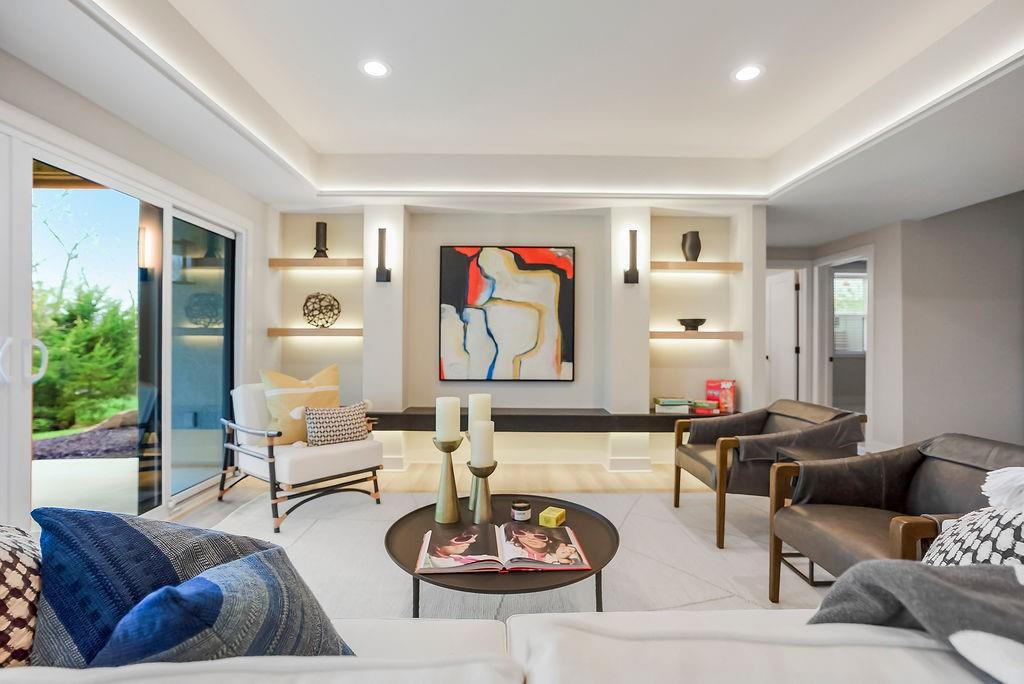 Like New and perfectly positioned on a premium lot backing to the award-winning Shadow Glen Golf Course, this stunning reverse 1.5-story home offers the ideal blend of luxury, comfort, and thoughtful design. With 5 bedrooms and 4 full baths, this home is crafted with beautiful details throughout. The main level features a spacious primary suite with a spa-like feel, complete with a walk-in closet that conveniently connects to the laundry room. Two additional bedrooms are located on the main level, including one with its own private bath—perfect for guests or a home office. The heart of the home showcases a large quartz-topped island, expansive pantry, and open living spaces designed for both everyday living and entertaining. The walkout lower level is an entertainer’s dream, featuring a full bar area, generous recreation room, plus two additional bedrooms and a full bath. You’ll also find two separate storage areas, including a storm shelter for added peace of mind. Step outside to take in sweeping golf course views overlooking Hole #5, creating a serene and picturesque backdrop. Whether hosting gatherings or enjoying a quiet evening at home, this property offers the perfect setting. Welcome home.