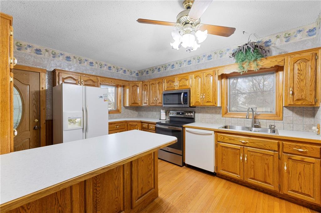 Expect to be impressed by this beautifully maintained and updated classic 1900's home, where historic character meets modern convenience. A welcoming covered front porch with brand-new decking leads you into an elegant parlor featuring a built-in desk and a beveled mirrored closet, which flows seamlessly into a spacious living room anchored by built-in bookcases and a cozy sitting area. The formal dining room serves as a stunning centerpiece for entertaining, complete with a charming China hutch and a picturesque window seat. Throughout the main level, gorgeous, refinished hardwood floors, original woodwork, and classic doors preserve the home's timeless soul. The heart of the home is the remodeled kitchen, designed for culinary enthusiasts with an abundance of cabinetry, a pantry, convenient pull-out drawers, a central island, and a suite of included appliances, most of which are newer. High-quality newer windows brighten every corner, including the main-floor master suite and the full bathroom featuring a relaxing whirlpool tub. A wonderful sunroom addition offers versatile living space and could easily serve as a fifth bedroom. The upper level provides even more room to grow with a family room, two additional bedrooms, and a full bathroom, while the finished basement adds a den, storage, a laundry room with a bathroom, and another bedroom. Completing this exceptional property is an oversized two-car attached garage and a sprawling yard, offering the perfect canvas for your outdoor dreams. This rare find combines the best of the past and present—don't miss your chance to make this beauty your own.