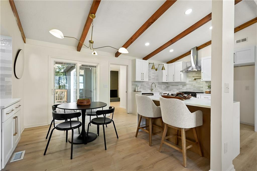 Step into this stunning mid-century modern ranch, thoughtfully designed with today’s homeowner in mind. From the high-end flooring to the spa-inspired bathrooms and multiple entertaining spaces, every detail has been carefully curated to impress. Upon entry, you’re welcomed by a breathtaking great room featuring soaring vaulted ceilings, original wood beams, and timeless mid-century accents. The show-stopping kitchen is truly the heart of the home—designed to wow with both style and functionality, perfect for everyday living and entertaining alike. The primary suite offers a private retreat, complete with a separate sitting room or office space featuring its own private fireplace—creating the perfect setting for cozy mornings or a relaxing work-from-home environment. Custom accent walls and designer lighting add a unique, upscale touch throughout. The luxurious primary bathroom features floor-to-ceiling tile, a double floating vanity, and a spa-like jetted steam shower. Upstairs, you’ll find three spacious bedrooms, two full bathrooms, and a versatile two-car garage currently set up for both parking and a home gym. The finished basement expands your living space even further, offering a second living area, full bedroom, full bathroom, and a wet bar with mini fridge—perfect for hosting guests or creating the ultimate entertainment zone. The backyard will be fully fenced prior to closing, with completion already in progress through city permitting—providing added privacy and peace of mind for the future homeowner.