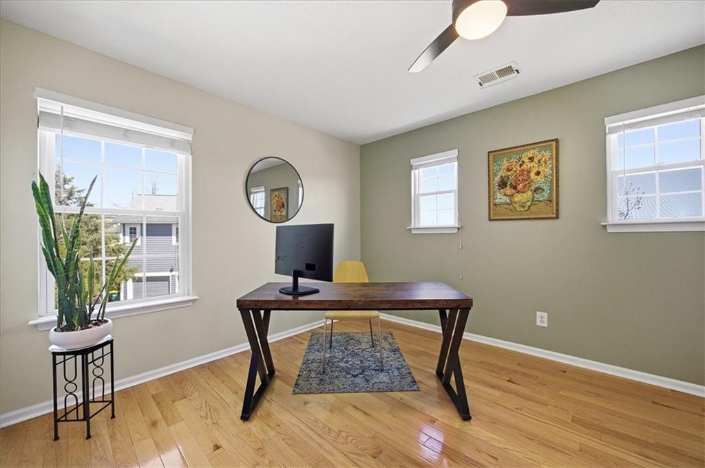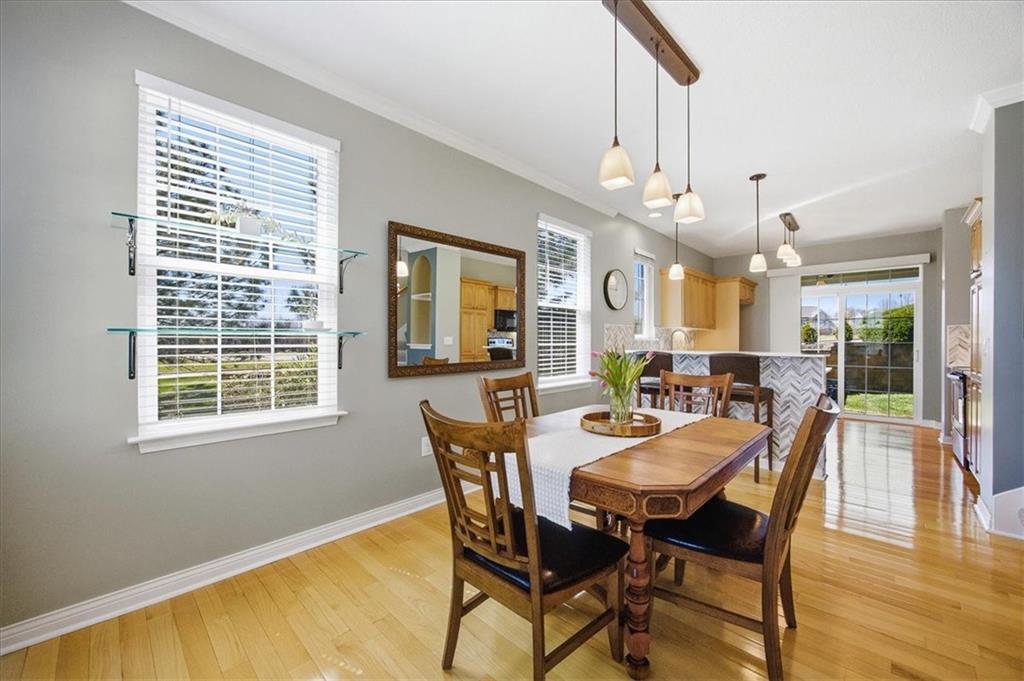 This beautifully updated detached villa is meticulously maintained and is a must see! It is filled with natural light and perfectly positioned to capture both stunning sunrises from the front and peaceful sunsets from the back patio. Large windows throughout create a bright, welcoming atmosphere, while the thoughtful updates allow you to simply move in and enjoy. The remodeled kitchen (2022) is both elegant and functional, featuring quartz countertops, a designer tile backsplash, updated fixtures, pull-out shelving, and rich hardwood floors that flow seamlessly throughout both levels. Upstairs, a versatile nook provides a flexible living space ideal for a home office, reading retreat, or creative space. The primary suite offers a beautifully updated shower, while other recent improvements provide peace of mind, including a new roof (2025), furnace (2022), water heater (2023), air conditioning system (2019), and exterior paint (2021). The major investments have already been made. Situated on one of the neighborhood’s more generous lots, the property feels like a private outdoor sanctuary, framed by mature trees that create a sense of privacy and tranquility. Outdoor enthusiasts will love the close proximity to the Wilderness Nature Trail just two blocks away, as well as the scenic walking trail surrounding the neighborhood pond. Residents enjoy access to desirable community amenities including a resort-style pool and fitness center, offering both relaxation and recreation just moments from home. Don't miss this rare opportunity to own a truly special home in a beautifully established community!