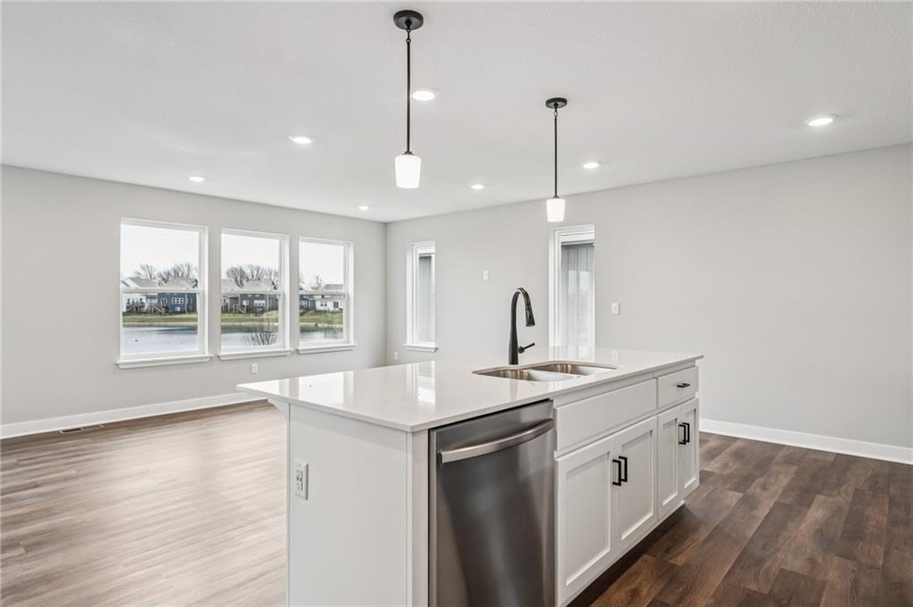 Beautiful 4 bed 2.1 bath 2 car garage home in the desirable community, located in the award-winning Lee’s Summit School District. Enjoy peaceful pond views from the back deck and a daylight basement that adds extra natural light and flexibility. The main level features an open-concept design ideal for everyday living and entertaining, with windows on three sides providing abundant natural light. The kitchen offers a large quartz island for sit-in dining, walk-in pantry, and flows seamlessly into the dining and great room. All bedrooms and the laundry room are conveniently located on the upper level. The spacious primary suite includes a spa-like bathroom with an oversized quartz double-sink vanity. Community amenities include an open-air clubhouse, pool, two playgrounds, covered pavilion with grill, and a scenic two-acre pond with walking trail.