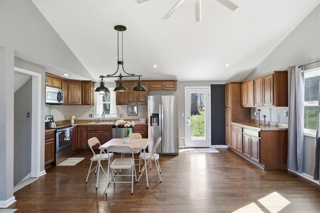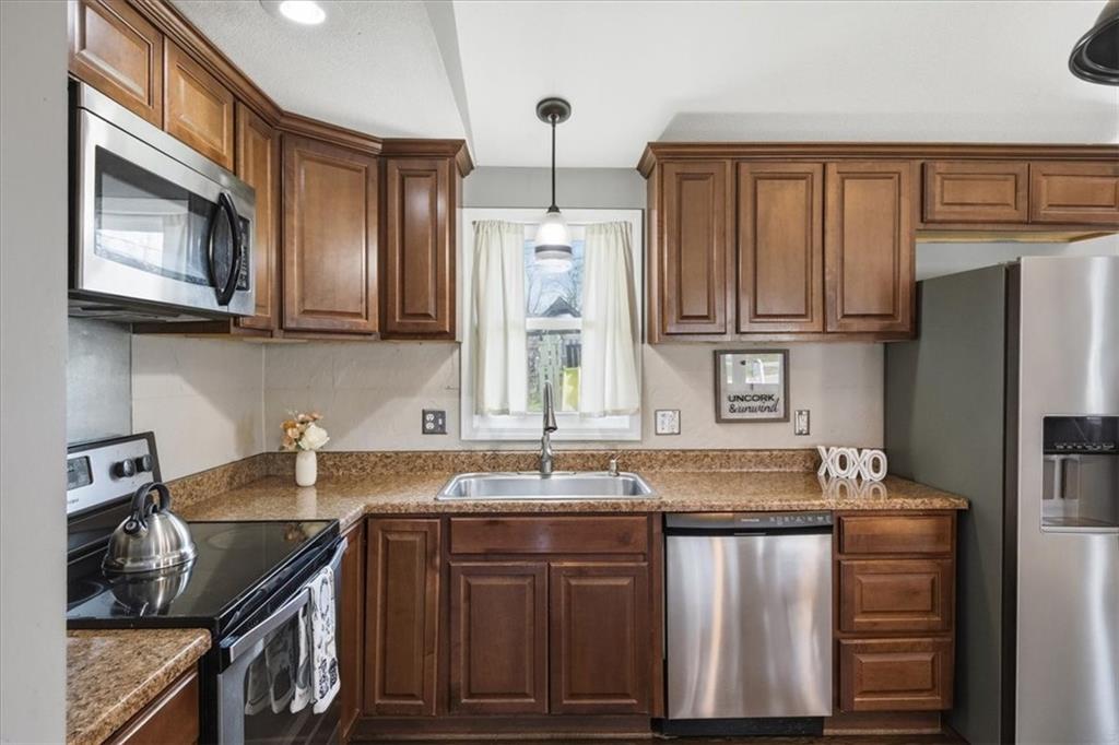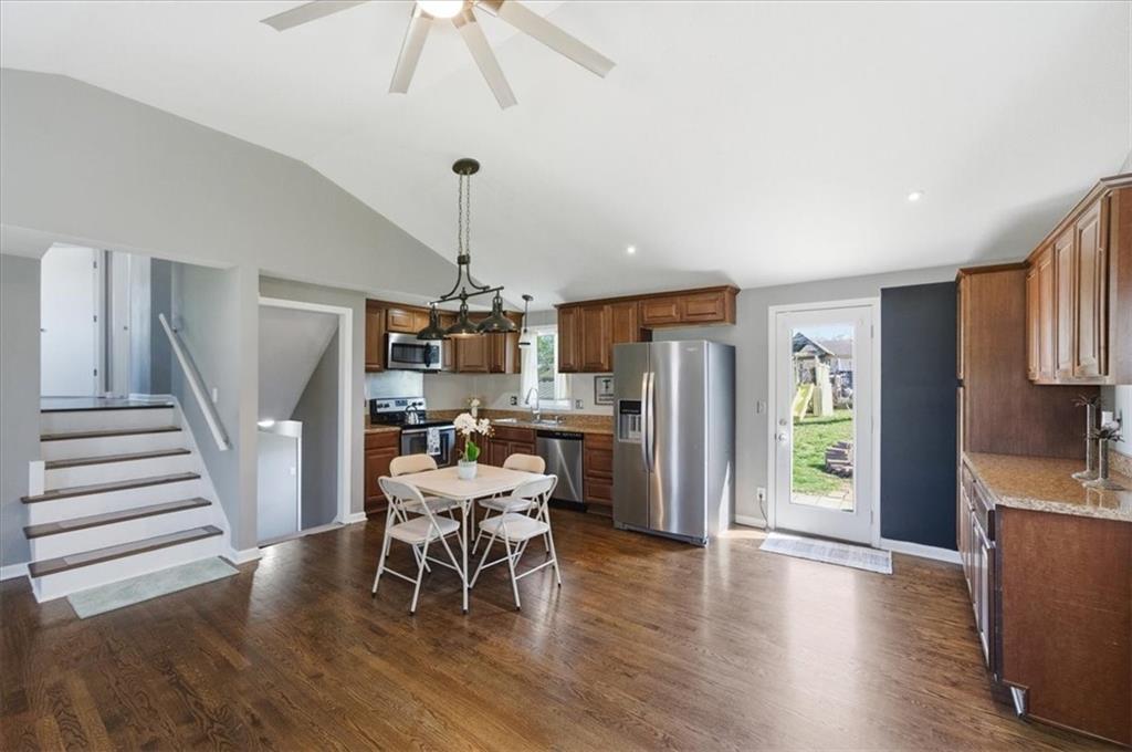 Fully remodeled 3 bedroom close to so many major attractions and amenities. This turn-key property offers terrific value and location! Bright, open main level with vaulted ceilings, hardwood floors, and a beautifully redone kitchen with stainless steel appliances; this spacious area provides comfort and convenience for your main family living space. Upstairs features 3 spacious bedrooms and an updated full bath. The lower level offers flexibility—perfect for a second living area, office, or both. The basement is nearly finished and ready for your final touches—add flooring to gain ~230 additional square feet. Includes remodeled half bath and laundry for immediate functionality. Large yard w/storage shed, clean and functional garage, and just minutes from The Legends, Kansas Speedway, and the proposed Chiefs stadium site! A quick drive to KCI or downtown. Homes in this location and price point move fast—schedule your showing today.