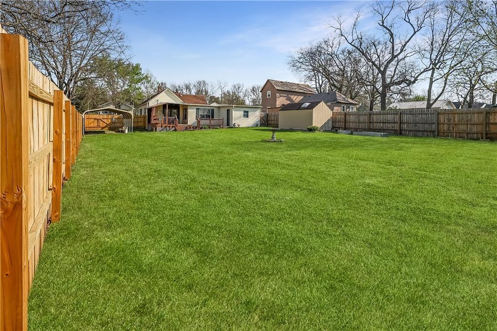Great for first-time buyers or those looking to downsize! This cute 2-bedroom home offers one-level living with an attached garage. The pearl of the home is the spacious backyard, complete with a 6-ft privacy fence—perfect for relaxing or entertaining. Rear parking, a storage shed, all on a large lot. All appliances stay, and the eat-in kitchen adds to the home’s charm. Newer heating and cooling systems provide added comfort and peace of mind. Ideally located near the Harrisonville Square, parks, and schools.