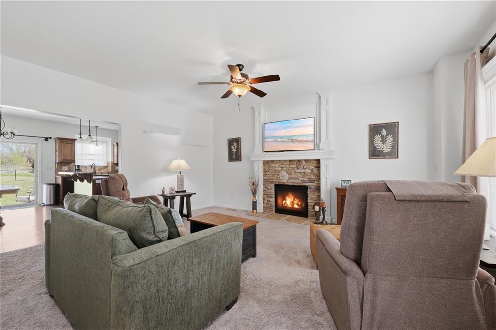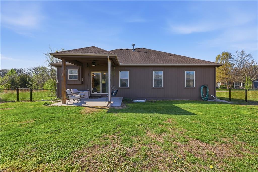 Enjoy true one-level living in this charming ranch tucked away on a quiet cul-de-sac in a sought-after Grain Valley neighborhood. The open living area is filled with natural light and flows easily to the covered patio overlooking a nicely sized backyard. Start your mornings on the covered porch swing, which faces east for beautiful sunrise views overlooking the green space. The large unfinished basement offers abundant storage, a safe room, and endless potential to finish into additional living space, bedrooms, a media room, exercise room or whatever fits your needs. This location blends convenience with community, just minutes from shopping, dining, coffee shops, medical offices, schools and easy I-70 access. Nearby amenities include Adams Dairy and Coronado shopping, the new Buckner Tarsney corridor, Lake Remembrance and Blue Springs Dog Park. All of this with no HOA—don’t miss it!