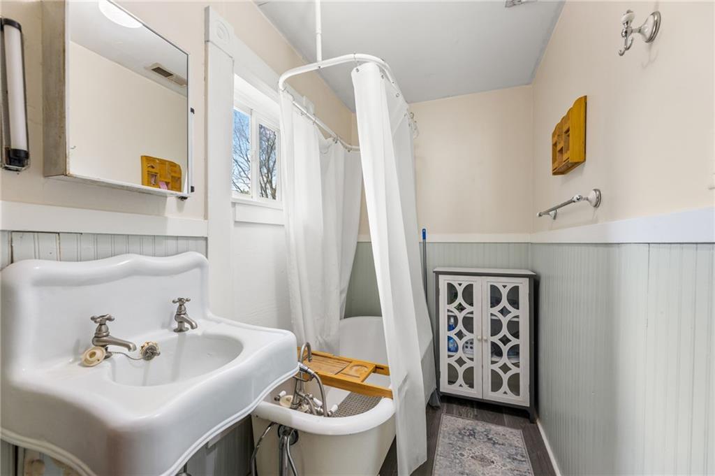 This stunning 4 bedroom, 2 bathroom home perfectly marries historic charm with modern sustainability, offering a rare opportunity to own a piece of architectural beauty. From the moment you step inside, you are greeted by the warmth of original woodwork, gleaming hardwood floors, and a magnificent original staircase that serves as a focal point of the home. The main level features a sprawling living room centered around a cozy gas fireplace, flowing seamlessly into a formal dining room designed for memorable gatherings. The kitchen is a chef's delight, boasting freshly painted cabinetry complemented by elegant new granite countertops. For year-round enjoyment, the sundrenched four-seasons room provides the ideal backdrop for entertaining guests or finding a quiet moment of repose. Practicality meets innovation with the inclusion of a newer HVAC heat pump and solar panels, ensuring exceptional energy efficiency and lower utility costs, including newer windows. The floor plan is thoughtfully designed for flexibility, offering a convenient main-floor bedroom while the upper level houses three additional spacious bedrooms and a full bathroom. Outside, the property continues to impress with a 2 car detached garage and a privacy fenced yard that offers a secluded oasis for relaxation. Situated in a prime location, this home is just a short stroll from the vibrant and historical Paola Town Square, where you can enjoy local shops, dining, and a variety of community events held throughout the year. This property isn't just a house; it's a lifestyle upgrade nestled in the heart of a charming community.