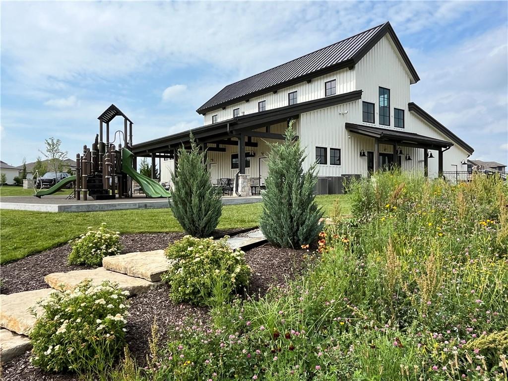 The Rosedale 1.5 Story plan with tandem 4 car garage, by SAB Homes is underway for a Sept. MOVE IN on lot #208 with large back yard trees. Beautiful modern farmhouse interior selection with light wood, white walls, mossy green accents, black and gold hardware and wood accent. Upgrades include celling beams, hallway wainscoting, white quartz and freestanding tub, front double doors with glass windows, large 14' patio along the back side of the house connecting the dining room to the primary suite, plus a covered patio. Pocket laundry in the primary closet and a full 2nd laundry upstairs by the bedrooms. This home has it all with a grand two story great room, main floor primary bedroom, office or formal dining room space, 3 bedrooms upstairs and a 2nd laundry. Striking curb appeal with stucco exterior, wood shutters, warm wood accents and real stone trim. Optional finished basement with 1164 additional square feet can be added with a 5th bedroom/ fitness room/ hobby space or extra office. There is still time to make your custom design selections. *This home is currently UNDER CONSTRUCTION and photos are from a previous home* Century Farms has a spectacular clubhouse with a fitness center, resort style swimming pool with a slide. There are plenty of neighborhood activities with a fire-pit, two pickle-ball courts and a basketball, kids play area, wildflower walkways and community garden. Century Farms is conveniently located near the brand new Bluhawk shopping center, Heritage Park, the Johnson County Trail system and the Overland Park Arboretum. Come join the fun in Century Farms, a unique one of a kind upscale new home community in Overland Park. BLUE VALLEY SCHOOLS