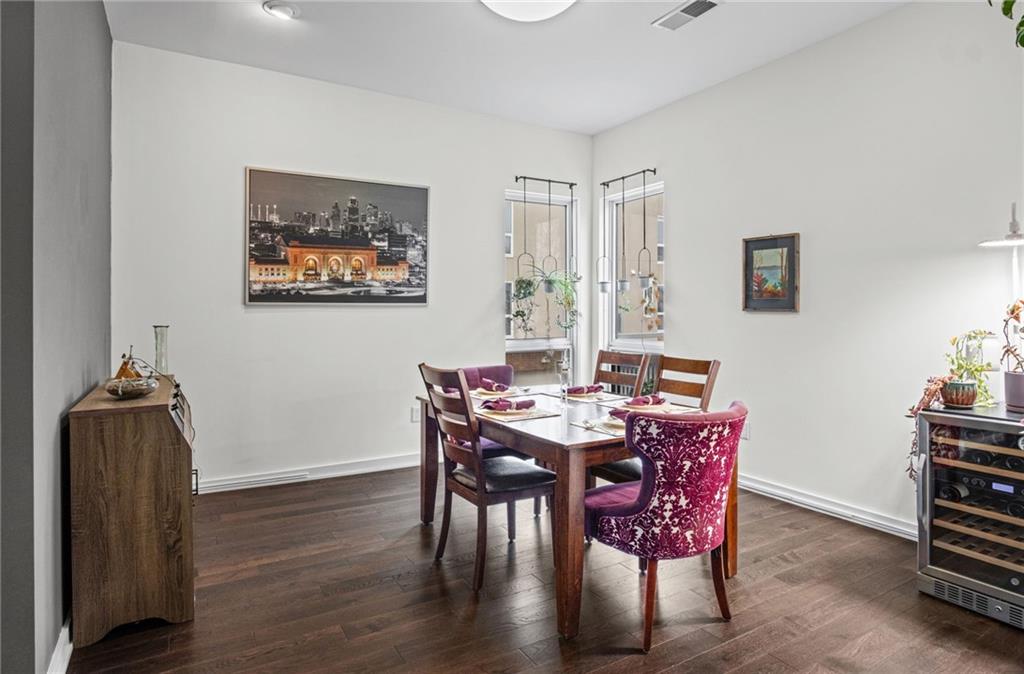 3-story corner townhome in Kansas City’s Westside! South-facing windows flood the home with natural light—ideal for plant lovers! Features 2 bedrooms, 2.5 baths, including a spacious primary suite with walk-in closet, dual vanities, separate shower, and one of two 6-ft jetted tubs. Crisp white kitchen with stainless appliances and gas range opens to a formal dining room. Hardwood floors, abundant storage, and two private patios! Rare heated 2.5-car garage—perfect for a gym or workshop—with 50-amp EV charging! Google Fiber ready. HOA covers gas, water, trash, sewer, landscaping, gym, etc. Prime location on the western edge of downtown—just a 12-minute walk to the streetcar!