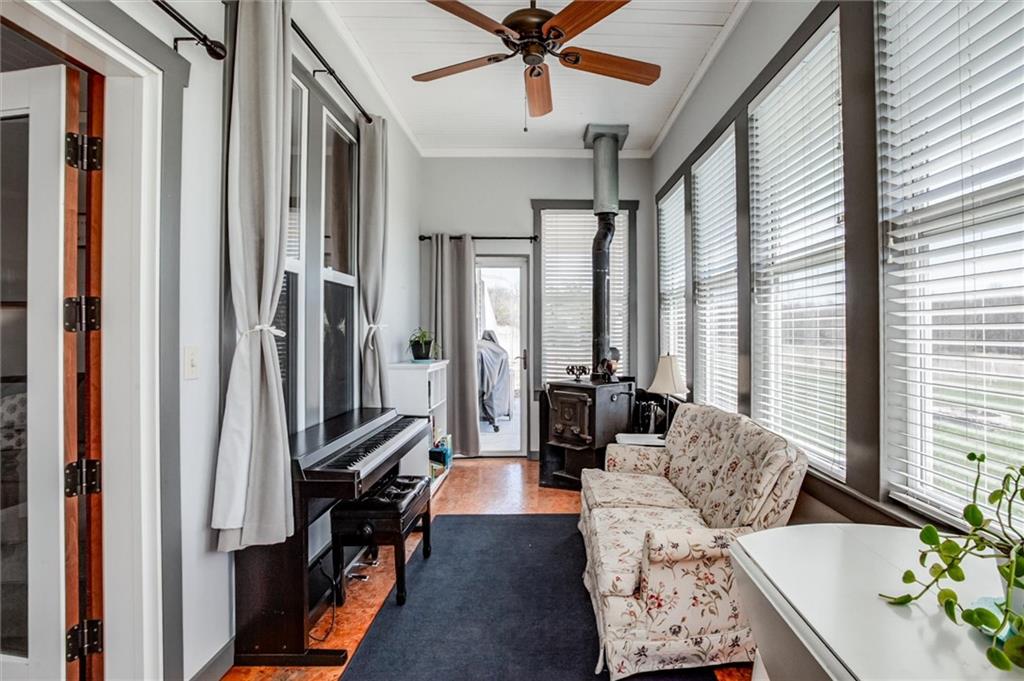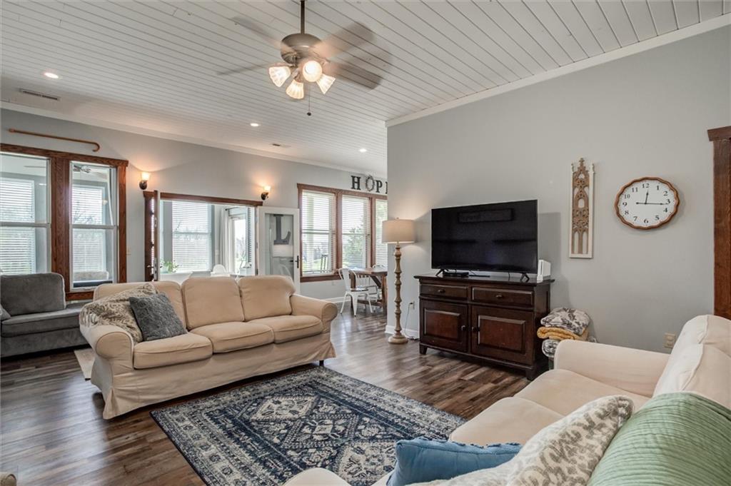 Whoa! This is the one you've been waiting for! Ranch home, outbuilding on 37.8 fenced acres! Built in 2007, this 2,456 sq ft. custom built 4 bdrm, 2 full bath, no steps, RANCH. Soaring 10 ft. ceilings, loads of natural light, open, modern floor plan with high end fixtures, flooring and details. Generous room sizes, delightful sun porch, custom cabinets and solid wood trim and doors, humongous pantry, Corian counter tops, see through cabinet showcase built-ins...the list goes on an on! Roof only 5 years old, 2 yr old HVAC, dishwasher is less than a year. Dining room holds table that seats 10! Property has a fantastic 30'x40' metal outbuilding w/concrete floors & 200amp box, two garage doors on one side and a lean-to on the other. This land...there's two tracts being sold here, a 32.5 and a 5.3 acre plat. There's two entrances, a small pond, chicken coop, some electric fencing in pastures. Orchard producing peach, apple, pear trees, persimmons, too! walking trails throughout property! It's really beautiful! Peaceful, country living just minutes from downtown Holden (@10 min), 25 min to Warrensburg and about hour from Kansas City International Airport. No HOA so build what you want on this sprawling acreage. Great for hunting, cattle, and much more! Professional photos scheduled for next week, including drone shots of the land, and home will be available for showings next Thursday, April 9th.