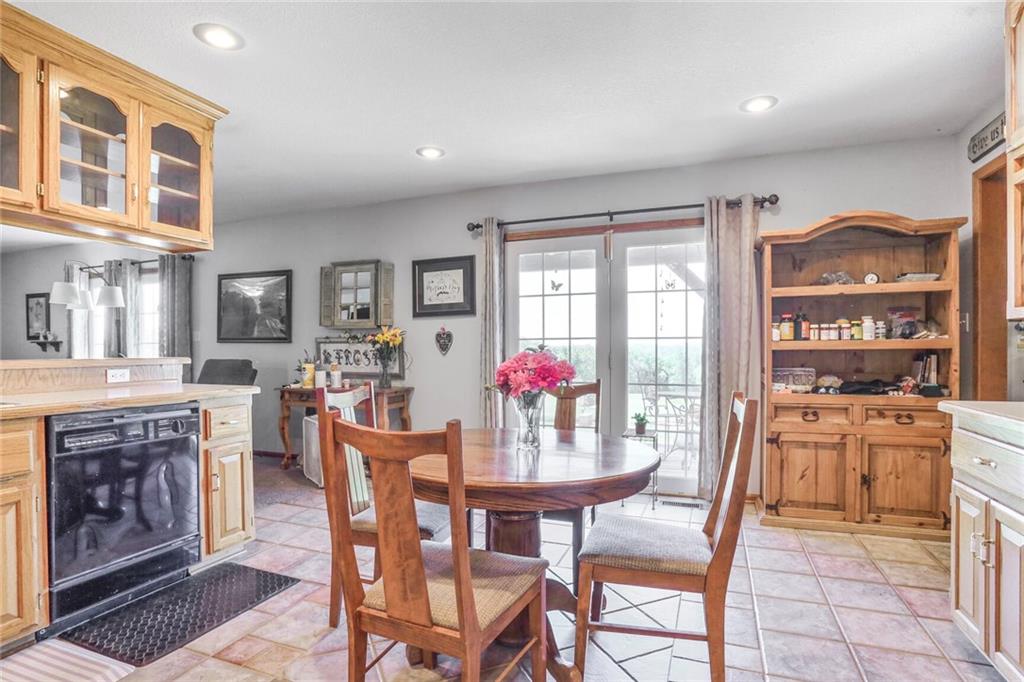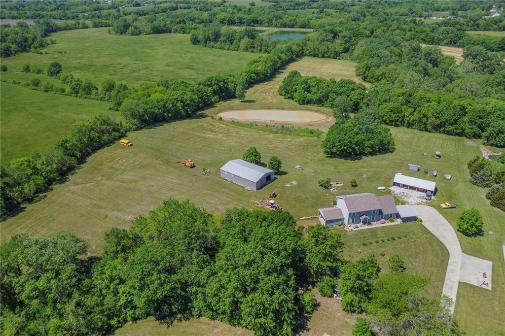 Welcome to your private oasis just outside the city limits! Nestled on nearly 25 picturesque acres on a paved road, this unique two-story home offers the best of both worlds—peaceful country living with the convenience of being just minutes from town and highway access. Step inside to a warm and inviting living room filled with natural light, featuring a cozy wood-burning stove. The open-concept design flows seamlessly into the kitchen, complete with tile floors, abundant cabinet and counter space, and a versatile bonus room just off the kitchen—perfect for a custom butler’s pantry or coffee bar. The dining area opens to an expansive deck, ideal for entertaining or simply taking in breathtaking views. You’ll even catch a stunning display of fireworks on the Fourth of July right from your deck! The main level also includes a dedicated office with French doors and custom built-ins, a convenient laundry room, and a half bathroom. Upstairs, the primary suite offers a tray ceiling, generous walk-in closet, cozy sitting area, and private bath complete with a whirlpool tub and separate shower. Two additional bedrooms and a full bathroom with tub and shower complete the upper level. The lower level offers ample storage and is ready to be finished to suit your needs-whether as additional living space, home gym, or game room. Enjoy the large outbuilding and shed for storage or hobby use. The property is ideal for nature lovers and hunters alike, with abundant wildlife and a charming bridge that leads to a gazebo—perfect for relaxing!
