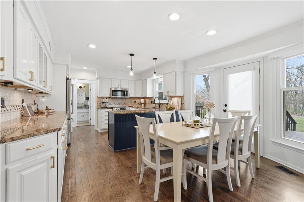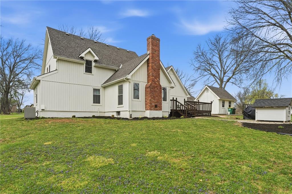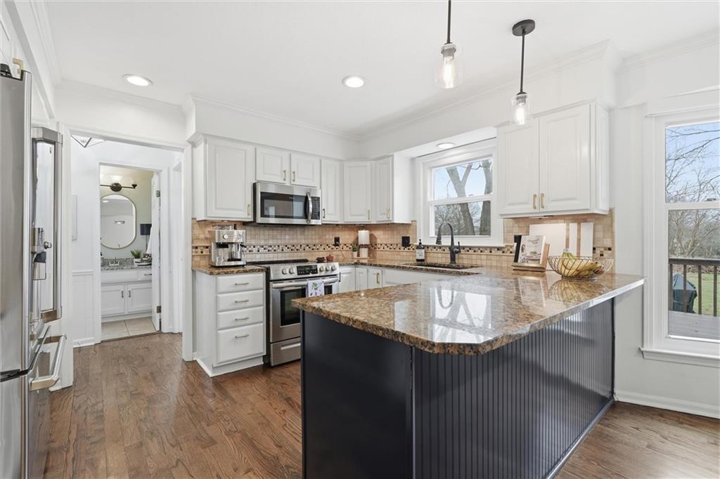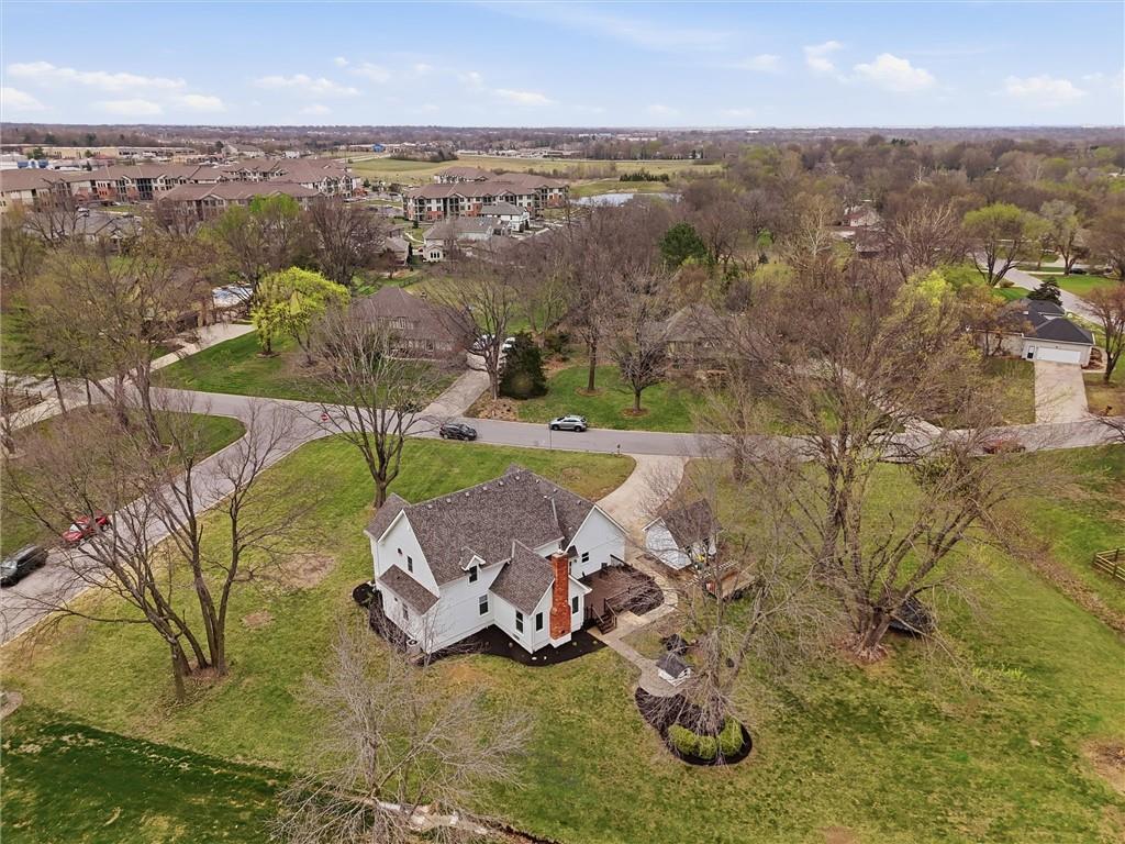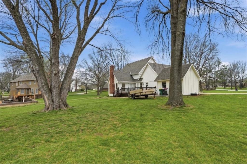 We have three words for you: Blue Valley Riding. This is an incredibly rare opportunity to get into one of the most coveted subdivisions in Johnson County - estate sized lots with a country living feel located in BVSD and just minutes from popular shopping, dining, and highway access. This beautiful and spacious 1.5 story home has it all - in addition to the perfect location, you’re getting curb appeal with fresh landscaping, updates throughout, a convenient floor plan, stunning views, hardwood floors, a sprawling primary suite, full finished basement, BRAND NEW ROOF, a third detached garage, new paint inside and out, and the list goes on. The gorgeous great room is everything you want in a living space, featuring vaulted ceilings with decorative wood beams, a floor-to-ceiling brick fireplace, plenty of natural light, and direct access to the back deck. Around the corner, the charming kitchen has an incredible amount of granite countertop space and cabinet storage with gold hardware, stainless steel appliances, tons of windows, and a cozy breakfast area that also opens to the back deck. The adjacent formal dining room has sophisticated updates including stylish wallpaper and an eye-catching chandelier, creating the perfect setting for entertaining guests or cozy family dinners. A main floor study, laundry, and half-bath make daily living easy and enjoyable, and ultimate relaxation awaits you in the private primary suite. The massive bedroom, room-sized walk-in closet and spacious, updated bath with extra-long double vanity and oversized shower are an absolute dream come true. Upstairs, three more generously sized bedrooms and a second full bath offer plenty of space for guests, family, or whatever best suits you. Outside, relax on the back deck surrounded by your oversized lot, mature trees, and the peace and beauty of this tranquil neighborhood. Welcome home!