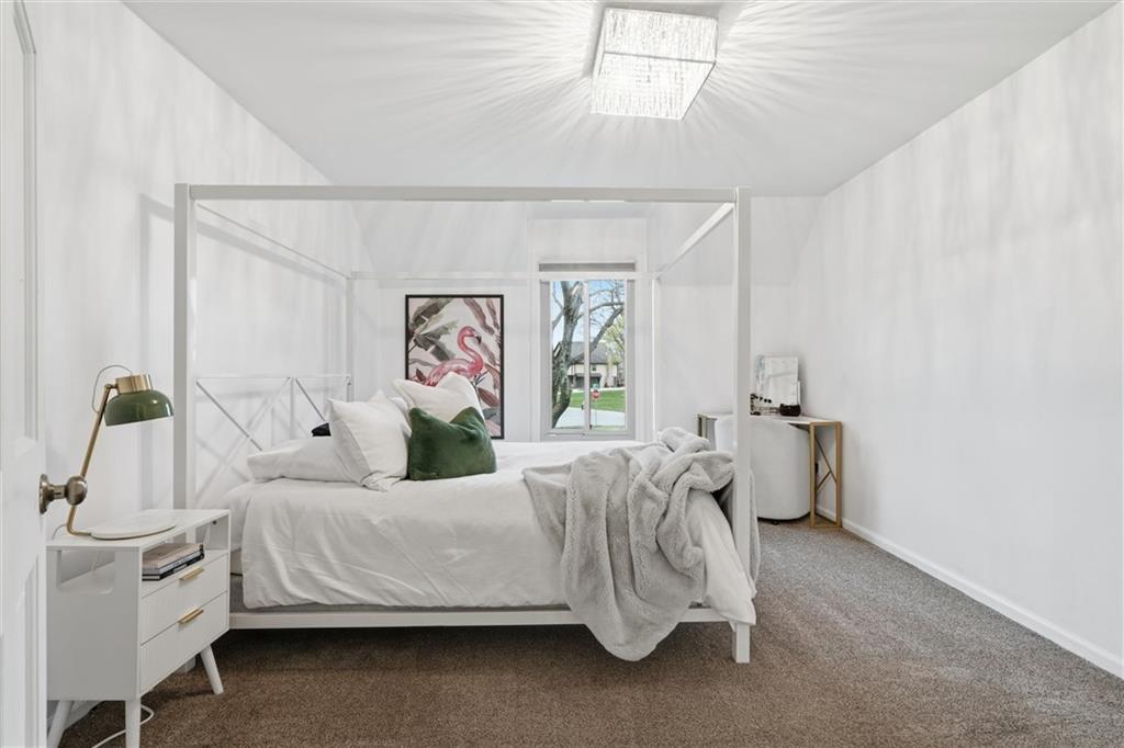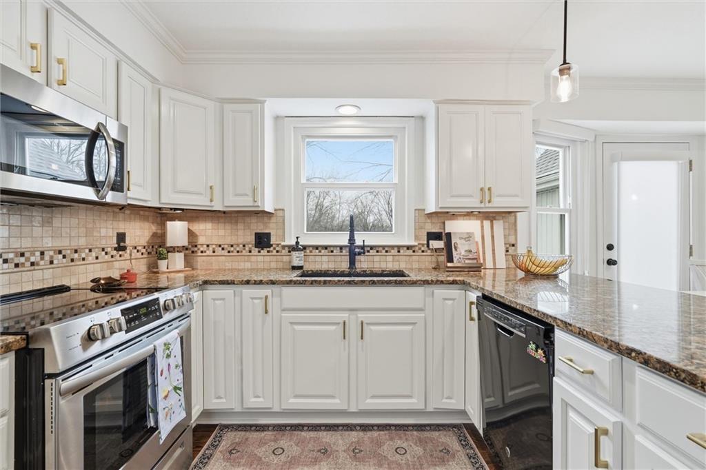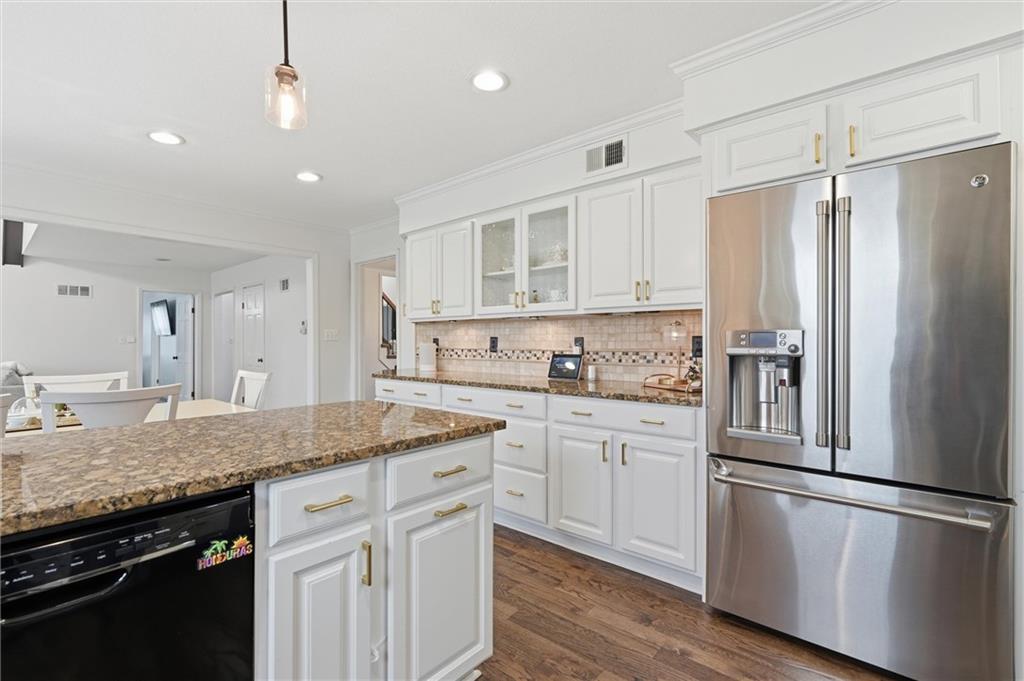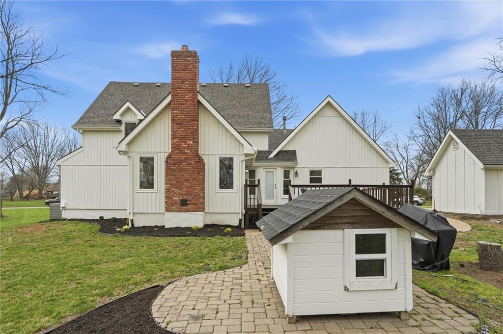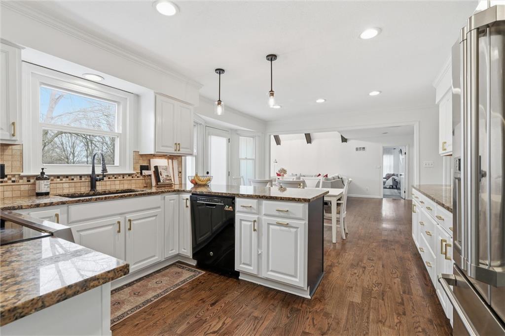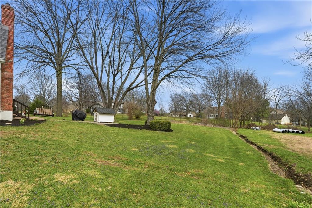 We have three words for you: Blue Valley Riding. This is an incredibly rare opportunity to get into one of the most coveted subdivisions in Johnson County - estate sized lots with a country living feel located in BVSD and just minutes from popular shopping, dining, and highway access. This beautiful and spacious 1.5 story home has it all - in addition to the perfect location, you’re getting curb appeal with fresh landscaping, updates throughout, a convenient floor plan, stunning views, hardwood floors, a sprawling primary suite, full finished basement, BRAND NEW ROOF, a third detached garage, new paint inside and out, and the list goes on. The gorgeous great room is everything you want in a living space, featuring vaulted ceilings with decorative wood beams, a floor-to-ceiling brick fireplace, plenty of natural light, and direct access to the back deck. Around the corner, the charming kitchen has an incredible amount of granite countertop space and cabinet storage with gold hardware, stainless steel appliances, tons of windows, and a cozy breakfast area that also opens to the back deck. The adjacent formal dining room has sophisticated updates including stylish wallpaper and an eye-catching chandelier, creating the perfect setting for entertaining guests or cozy family dinners. A main floor study, laundry, and half-bath make daily living easy and enjoyable, and ultimate relaxation awaits you in the private primary suite. The massive bedroom, room-sized walk-in closet and spacious, updated bath with extra-long double vanity and oversized shower are an absolute dream come true. Upstairs, three more generously sized bedrooms and a second full bath offer plenty of space for guests, family, or whatever best suits you. Outside, relax on the back deck surrounded by your oversized lot, mature trees, and the peace and beauty of this tranquil neighborhood. Welcome home!
