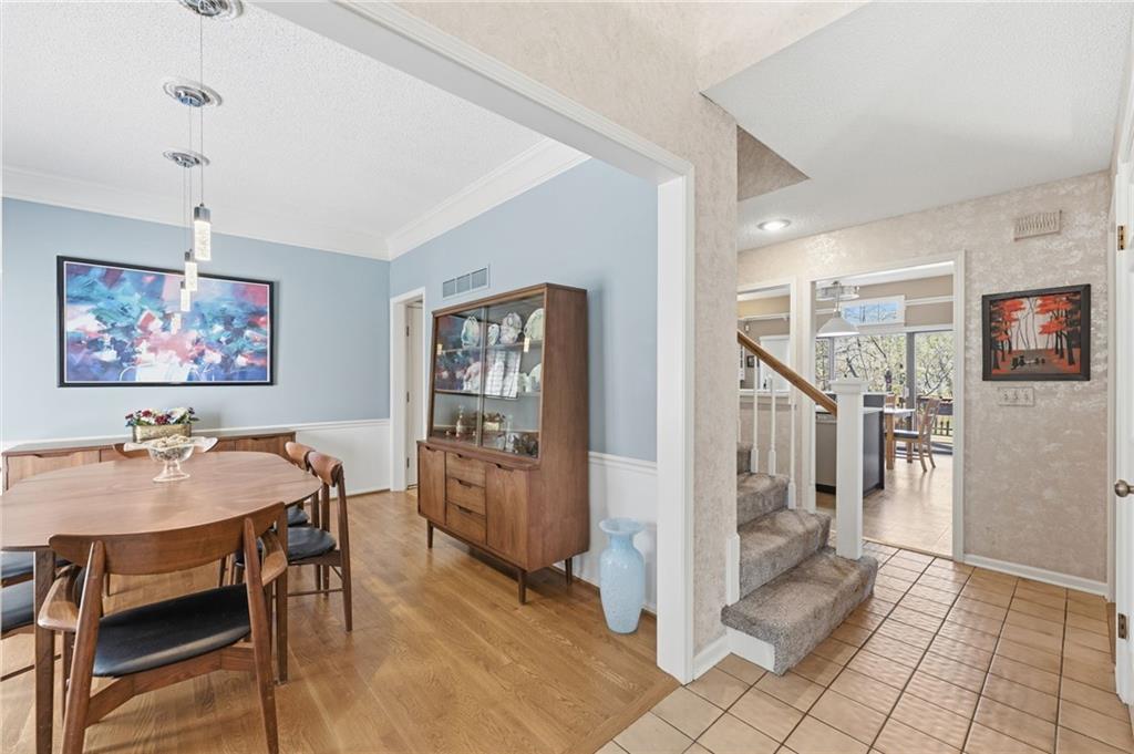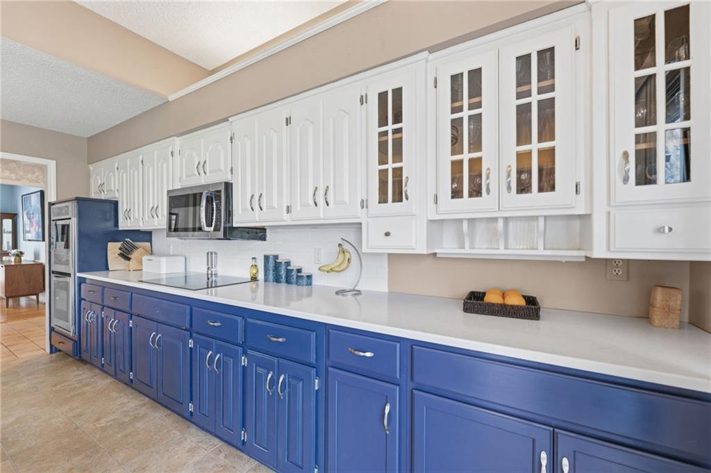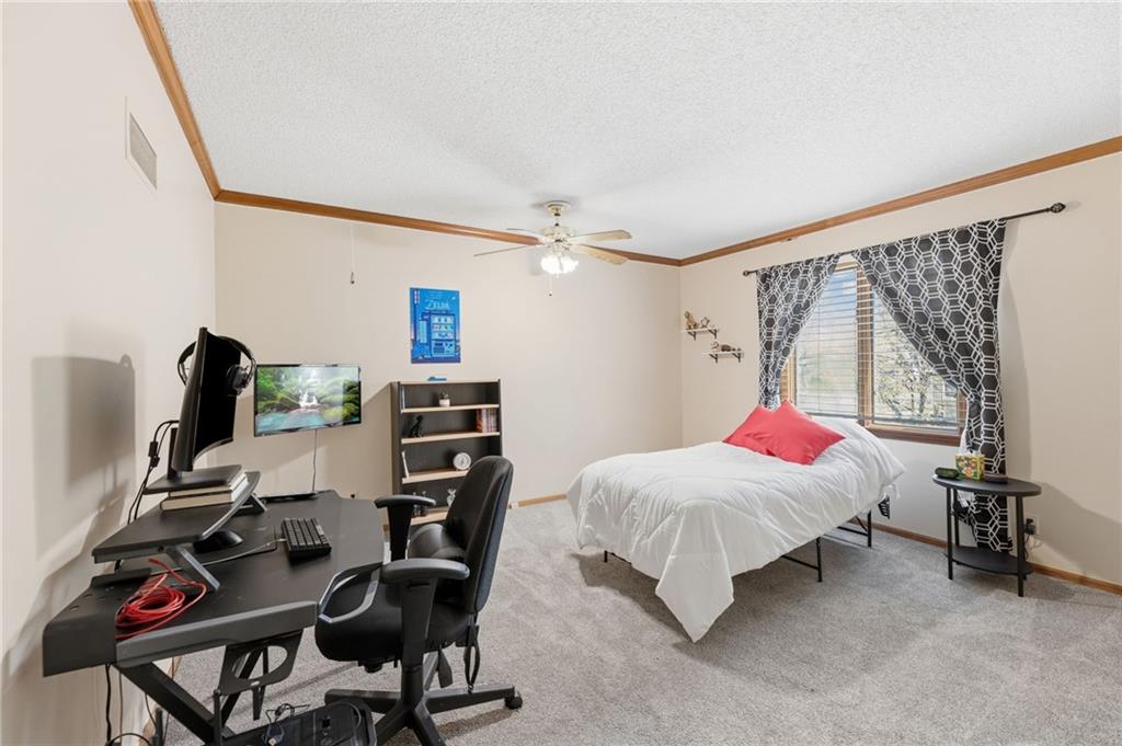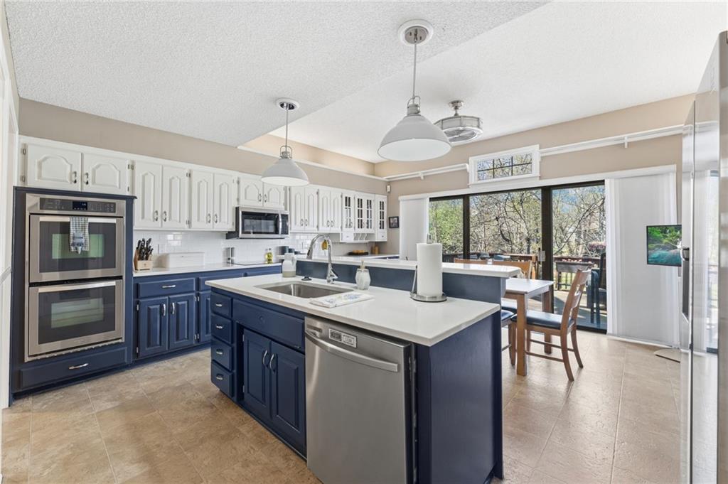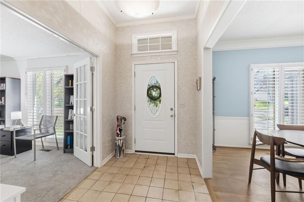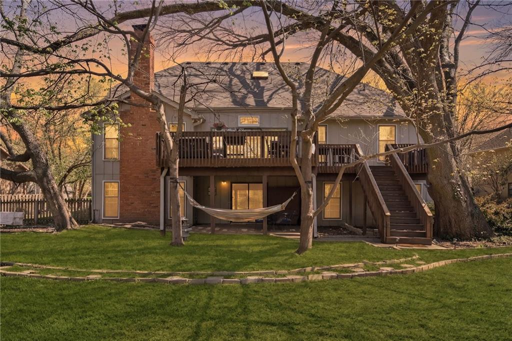 Experience refined living in this exceptional 1.5-story residence nestled in the sought-after Rolling Woods community of Blue Valley North. Boasting 5 spacious bedrooms, each with its own walk-in closet, this home offers both elegance and functionality at every turn. The beautifully appointed kitchen, with a breakfast area looking out over the back yard, features abundant cabinetry, a pantry, new countertops and flows effortlessly into a warm and inviting family room. Step outside to an expansive deck overlooking a private, picturesque backyard, perfect for upscale entertaining or quiet evenings at home. The finished walk-out lower level is an entertainer’s dream, complete with a generous recreation space, fifth bedroom, and full bath, ideal for guests or multigenerational living. Formal living and dining rooms provide timeless sophistication. Walls of tall windows bathe the home in natural light, enhancing its airy, open feel. With approximately 3,743 square feet, main-level laundry, and included appliances, this home offers both luxury and convenience.