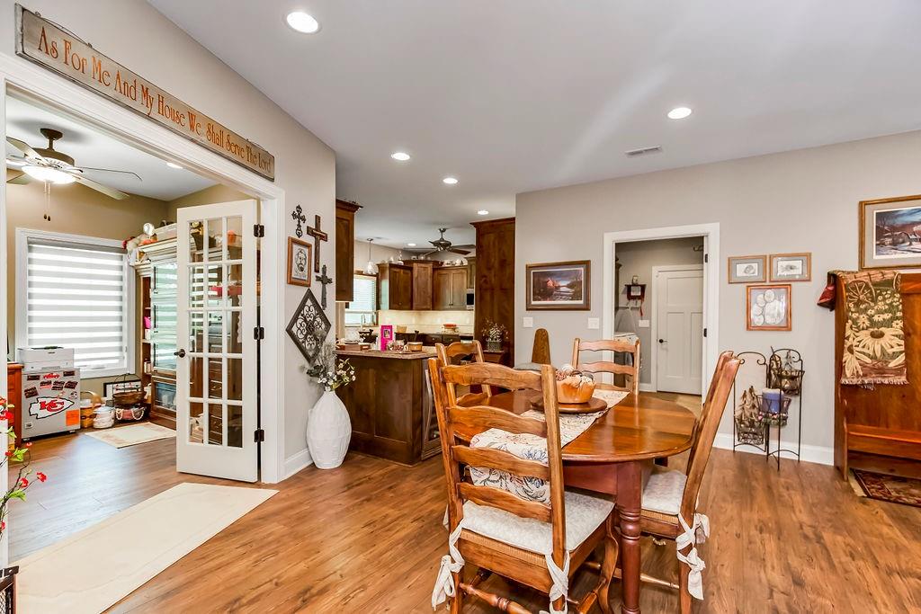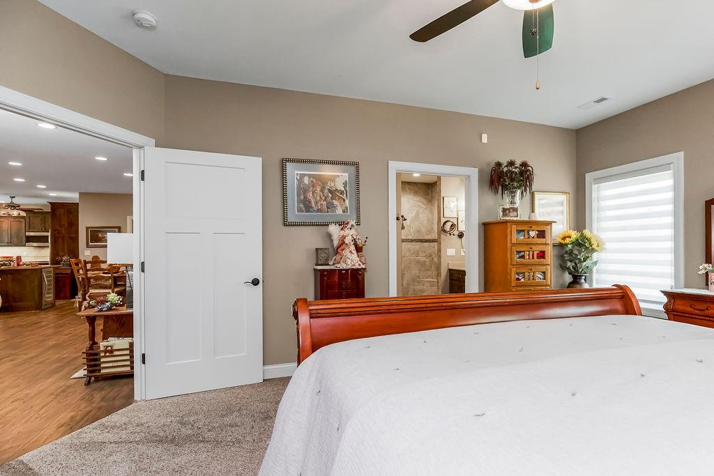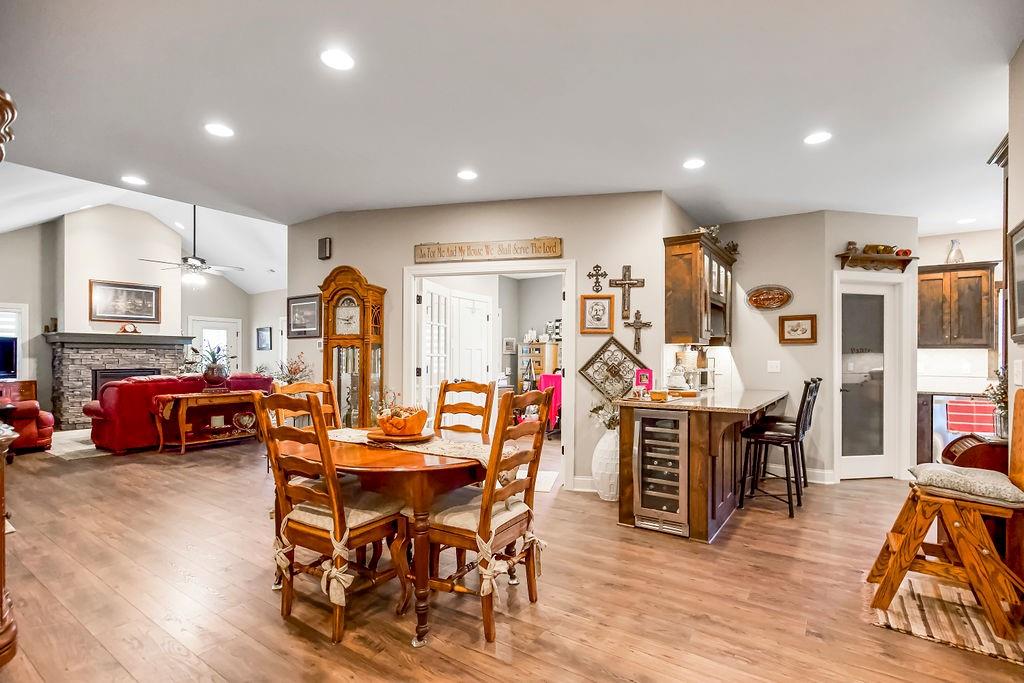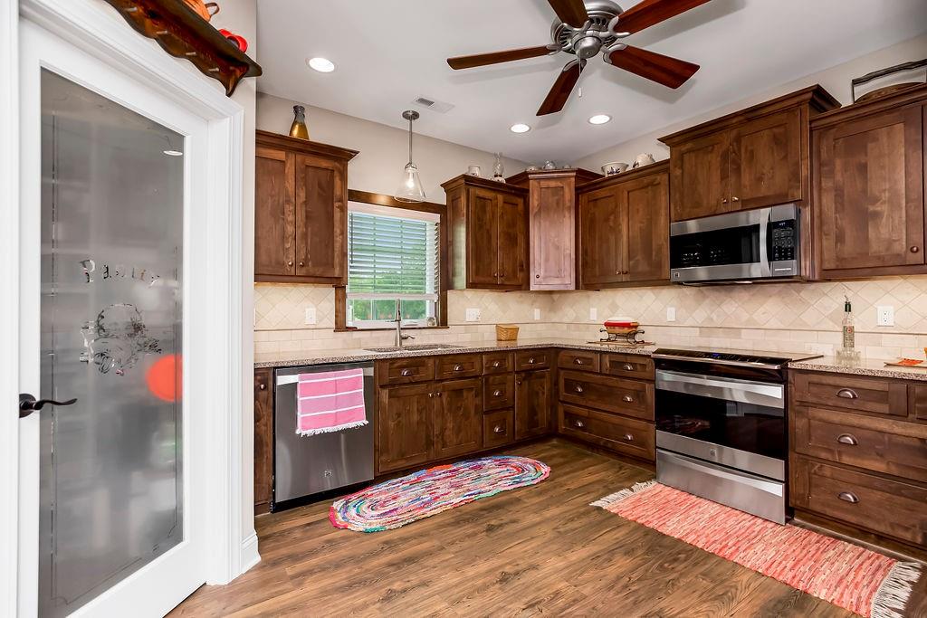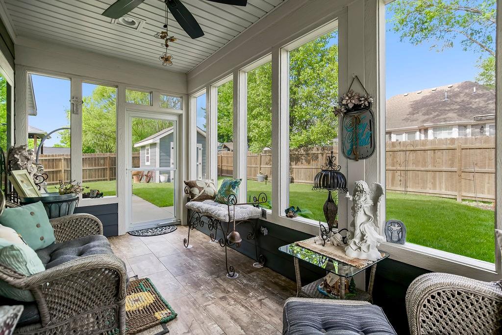 3 Bedroom 2 Ba Ranch, Custom design one ownerr home on a Large spacious Corner Lot, customized to perfection in the Cuttings Subdivision. --Gorgeous Mahogany front door, vaulted ceilings living room with modern gas fireplace wrapped in Santa Fe Timber Ledge. Hardwood floors throughout the main living area, Custom roman shade blinds over the Andersen Energy Star Windows. Open floor concept, 9' ceilings, with tons of light and storage galore! R-50 Fiberglass blown insulation helps ensure the home stays comfortable no matter the season of the year..... Kitchen is fully stocked with stainless steel appliances including a wine fridge, Superior Alder Wood Cabinets with pull out shelves, soft close drawers, topped with decorative finishes with an eat-in bar area and a large Walk in Pantry. *** A peaceful and spacious master bedroom has an attached bathroom with Alderwood Cabinets, double sinks, RADIANT HEATED FLOORS tile flooring, walk in shower, heat lamp, linen closet and huge walk-in closet. ***The second bedroom provides loads of storage with a safe room. ** The third bedroom currently used as an office space just off the kitchen with loads of natural light. Enjoy your mornings, afternoons & evenings in the screened in porch while admiring the whimsical landscaping around you. The attached pergola off the Spacious garage, amplifies the craftsman charm and the lawn irrigation system helps with the ease. AND As an extra, enjoy the 10 X 12 extra building to use for storage or turn into a great hobby shed.