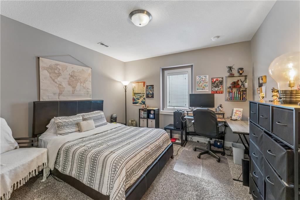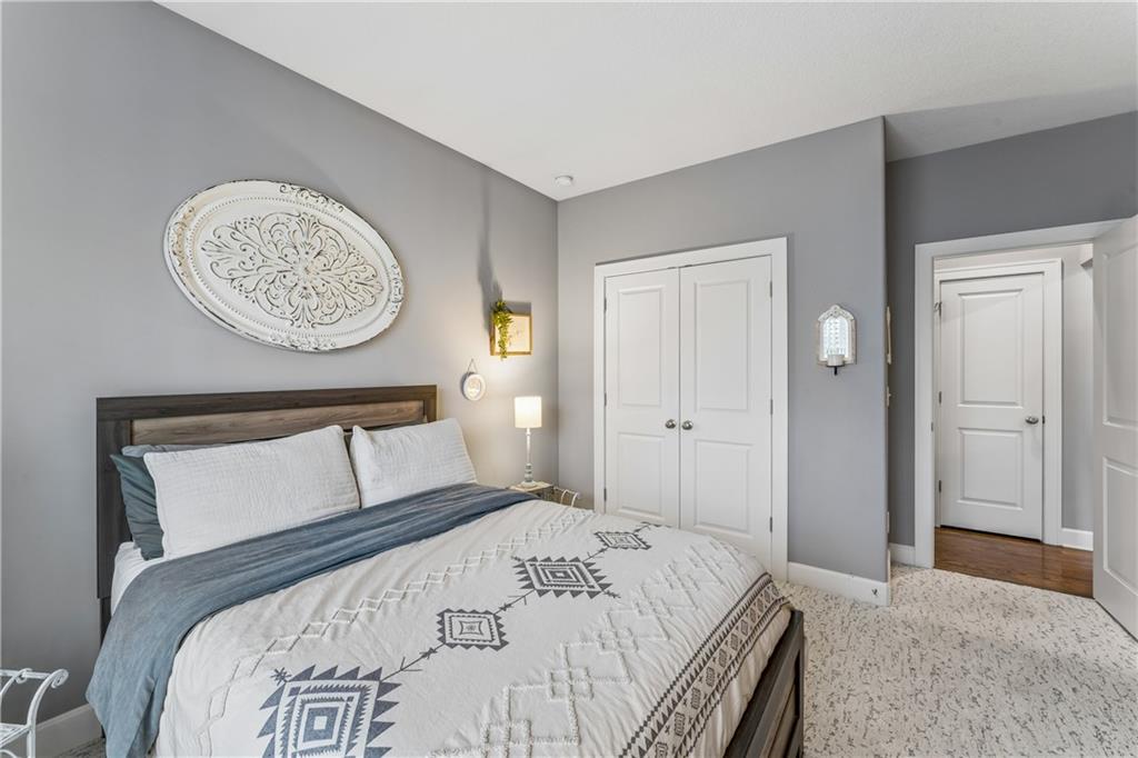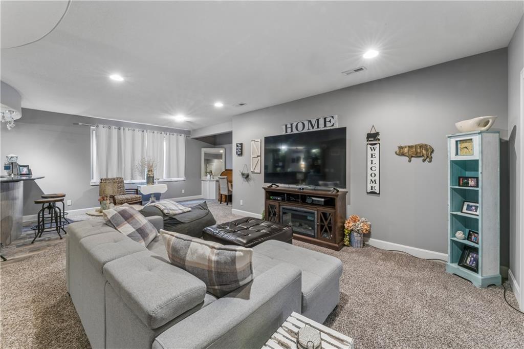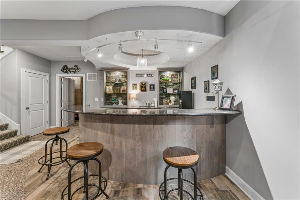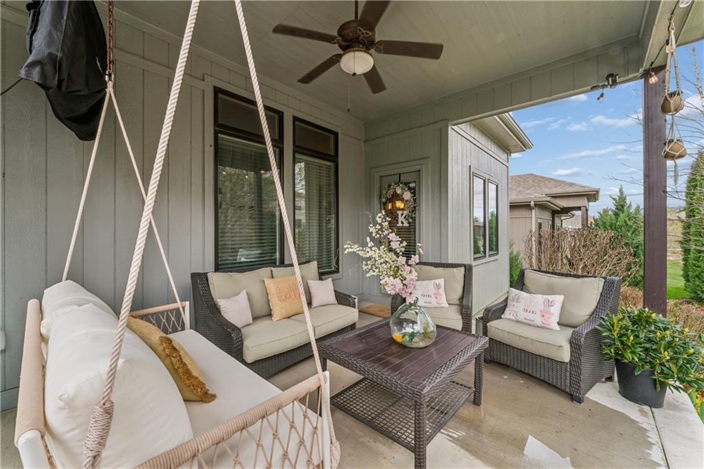 Welcome to this stunning Sorrento model 1.5-story located in the highly sought-after Canyon Ridge subdivision in Lenexa. This "Pauli Homes" beautifully designed 4-bedroom, 3 full bath, 2-car garage home offers a rare combination of architectural character, thoughtful design, and an exceptional setting. A stunning example of modern Craftsman-inspired architecture, offering the perfect balance of warmth, character, and contemporary design. Perfectly positioned on a daylight lot with some green space and a peaceful pond view. This home provides both privacy and picturesque surroundings. Built in 2016, this home stands apart with a timeless sense of style and warmth that is often missing in today’s newer construction—offering a more inviting, refined feel with custom finishes and distinctive design elements throughout. The open-concept main level is filled with natural light and features a main-floor primary suite for everyday convenience. Unique architectural details create lasting impressions, including a gorgeous circular ceiling light display and a beautifully crafted custom curved bar in the finished lower level, perfect for entertaining. The daylight basement expands your living space and includes two additional spacious bedrooms, a full bath, and generous room for gatherings, recreation, or guests—all with a bright, open feel. The unfinished basement space is already outfitted with a fully equipped home gym, offering an example setup for health-conscious buyers who value convenience and consistency in their fitness routine. This home truly showcases a level of character, craftsmanship, and individuality that sets it apart, offering a more classic, comfortable, and elevated feel compared to many newer builds. Ideally located near shopping, dining, and major highways, this exceptional home blends location, lifestyle, and timeless design into one remarkable opportunity.