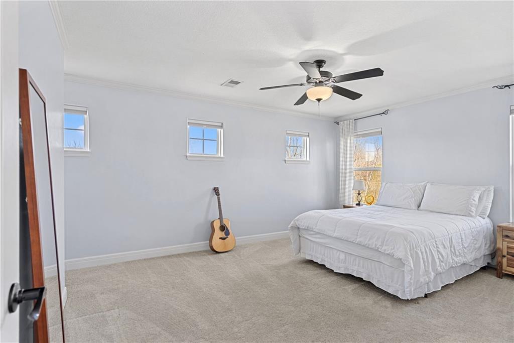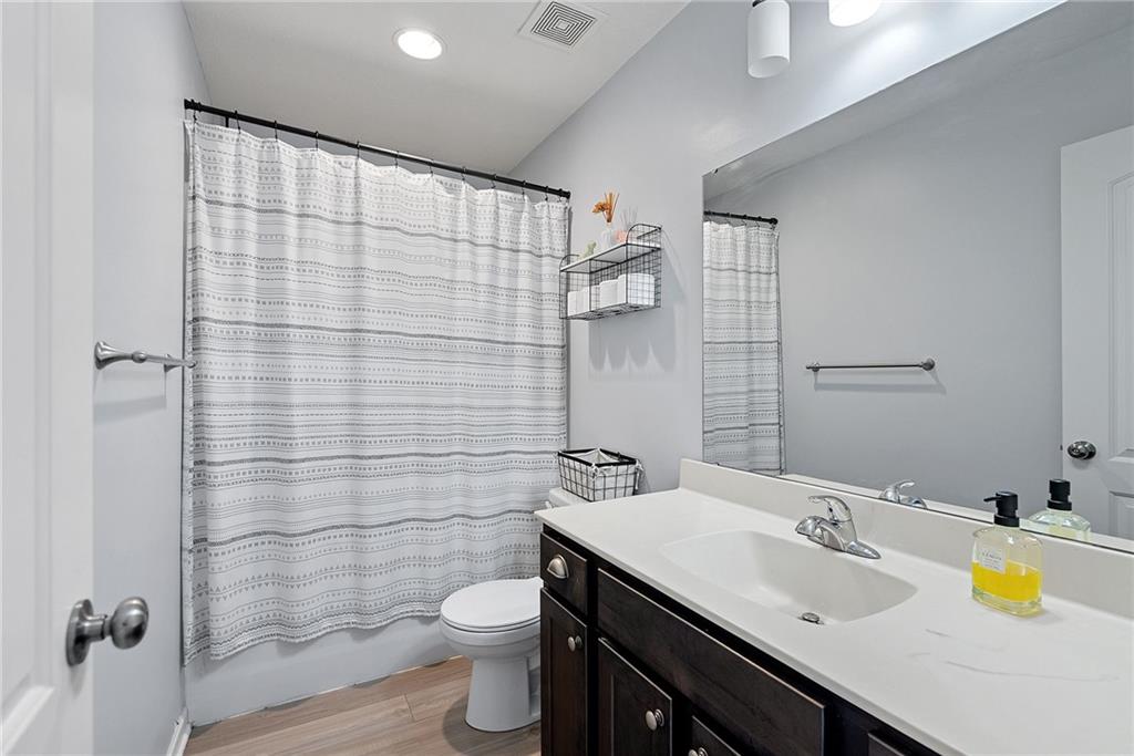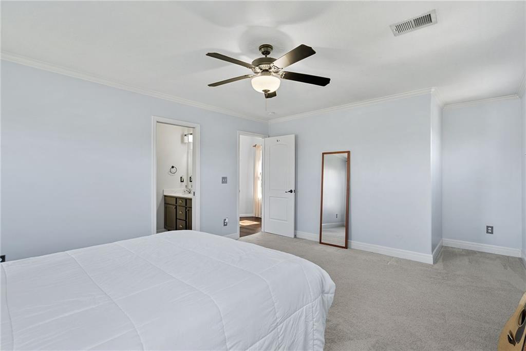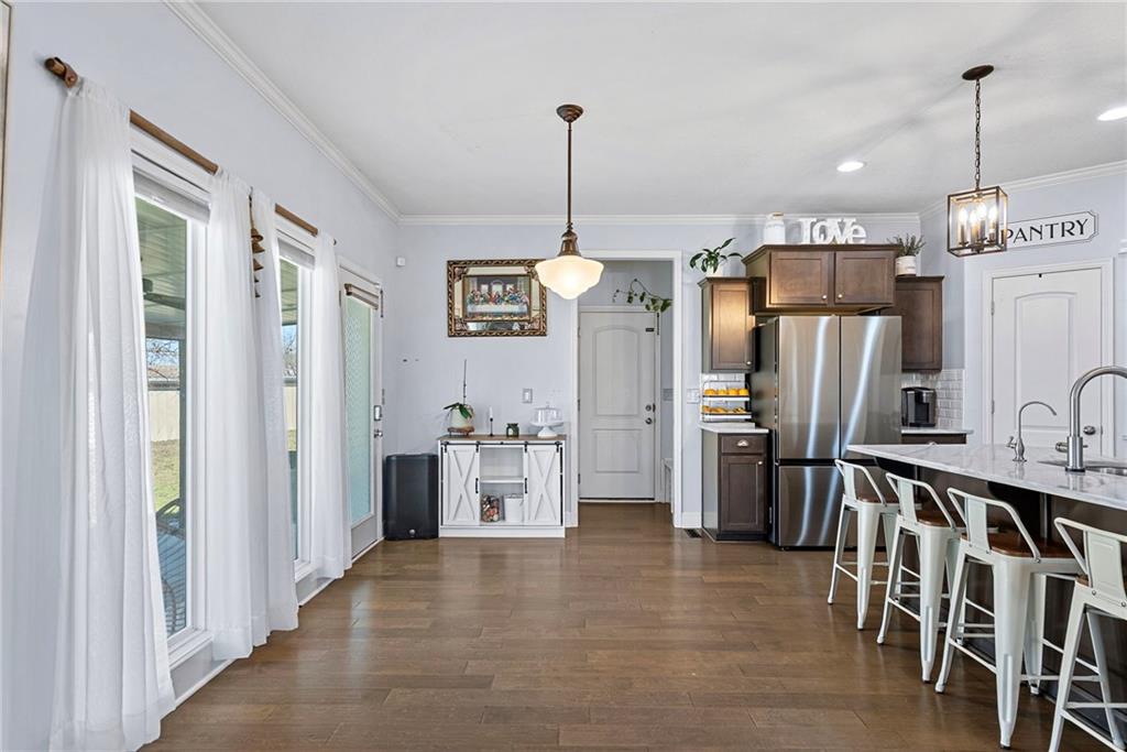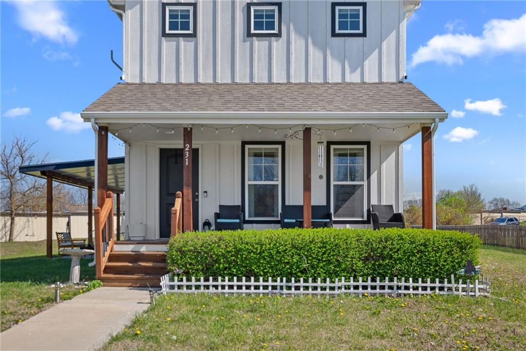 Welcome to this beautifully updated farmhouse-style two-story home, situated on a spacious lot with a charming front porch, rear-entry attached two-car garage, and a driveway accommodating up to six vehicles. Recent improvements include a new covered patio and updated stairs. The open main level offers fresh paint, abundant natural light, crown molding, and a well-appointed kitchen featuring granite countertops, an island, and a walk-in pantry. The second floor includes three bedrooms, two full baths, and a convenient laundry room. The primary suite features a double vanity and a large walk-in closet. Located at the end of a quiet street in a newer neighborhood with excellent highway access, this home is truly a must-see.
