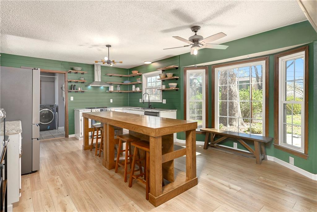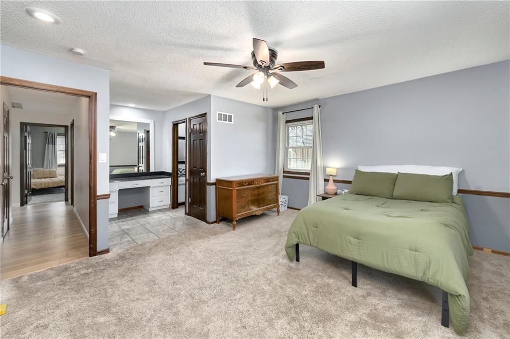 Welcome to this massive, fully updated true ranch in Kansas City, located in the desirable Raytown School District! With an impressive 4,811 total square feet (including both finished and unfinished space), this home offers incredible room to spread out and grow. The basement alone features 2,083 square feet, including 744 square feet of finished living space with a bonus non-conforming bedroom, plus extensive unfinished space ready for storage, hobbies, or future expansion. This home features 4 bedrooms, 3.5 bathrooms, and a rare layout with two oversized primary suites, making it ideal for multi-generational living or added privacy for guests. The main level includes the primary suite plus two additional bedrooms, along with main-level laundry for everyday convenience. The private primary suite offers a true retreat with a large walk-in closet, abundant storage, and a spacious en-suite bathroom. At the heart of the home is the completely renovated kitchen, featuring a huge island perfect for baking, gathering, or enjoying your morning coffee, along with updated finishes that blend both style and function. You’ll love the formal dining room, dedicated office space, and inviting living room with a beautiful fireplace, all on the main level. Fresh updates throughout include new flooring, new paint, updated light fixtures, and remodeled bathrooms, giving the home a clean, move-in-ready feel. The finished basement expands your living space with a large second living room with fireplace, the non-conforming bedroom, and tons of storage, plus a framed-out area (with electrical already completed) ready for a future office or additional finished space. Outside, enjoy a large backyard, great curb appeal, and a welcoming front porch with classic dormers—perfect for relaxing mornings. If you're looking for a large ranch home in Kansas City with multiple primary suites, updated finishes, and flexible living space, this one truly stands out.