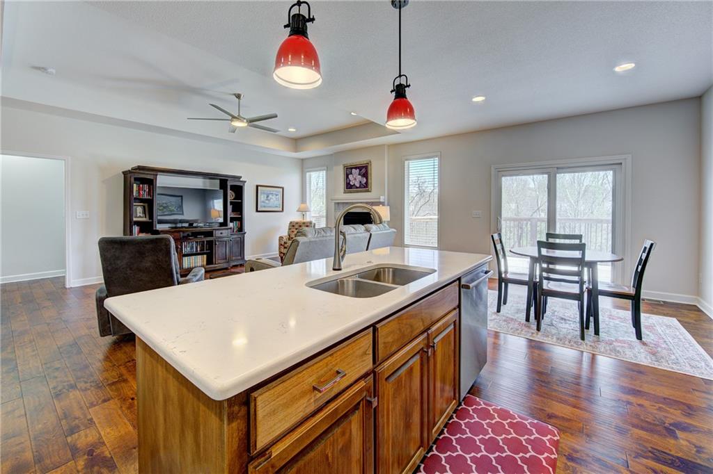 Better-than-new, maintenance-provided villa with a fenced yard that backs to trees and walking trail! Spacious and open floor plan includes the great room with gas fireplace and abundant natural light flowing seamlessly into the kitchen with walk in pantry, Quartz counters and large island with breakfast bar. The dining area walks out to a deck overlooking the backyard-perfect for relaxing and entertaining! The main-level primary suite is generously sized and includes a walk-in closet, double vanity, tile shower and private martini deck! Second bedroom, 2nd full bath and laundry room are also conveniently located on the main floor. The finished walkout lower level is ideal for multi-generation living with a large family room, wet bar, third bedroom, full bath, non-conforming fourth bedroom/office and access to the lower patio. Wired and ready with concrete pad for a generator! Maintenance-provided community includes lawn care, snow removal, and sprinkler system for only $132 per month. Fantastic location close to highways, shops, dining, walking trails and Stone Canyon Golf Course!