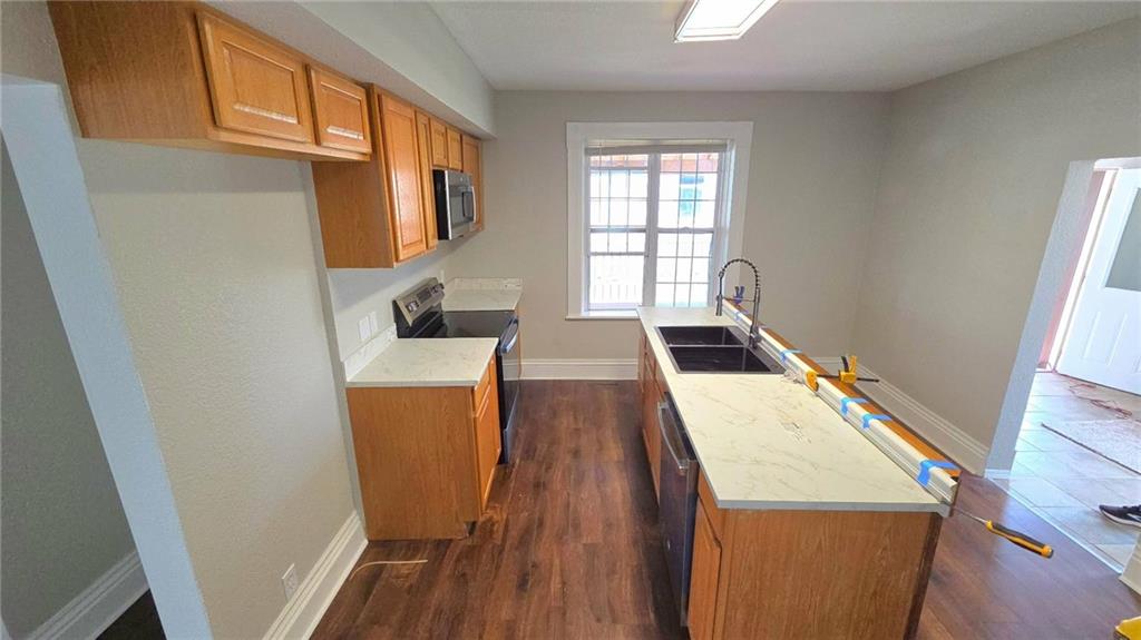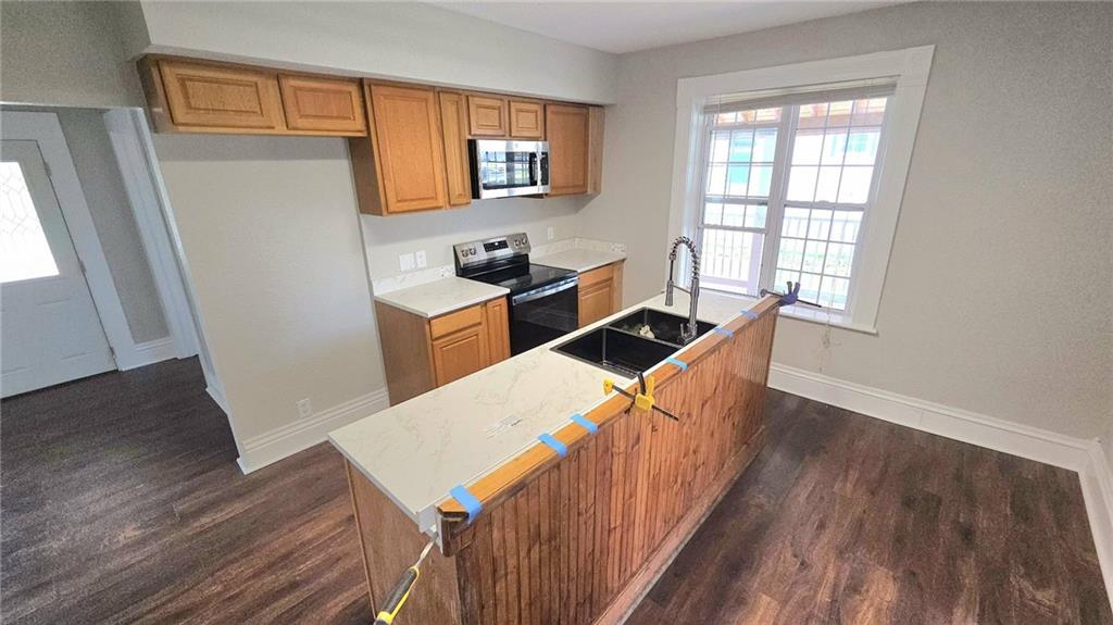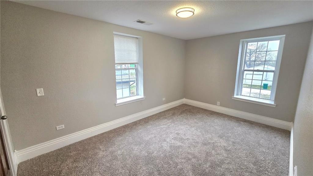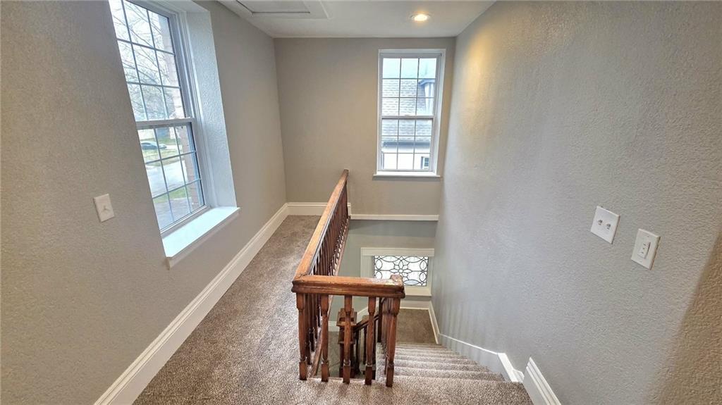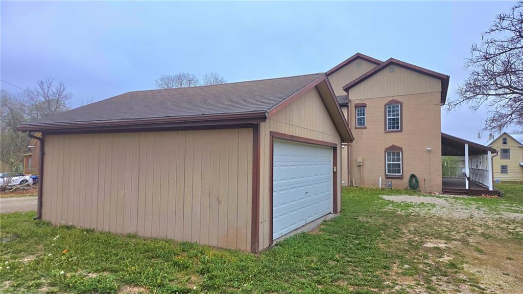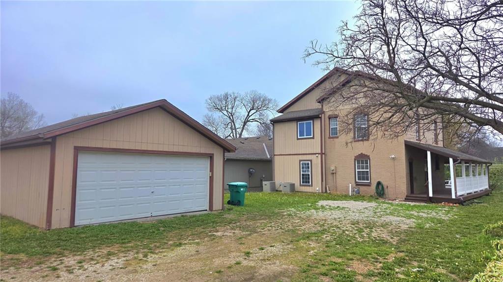 Prepare to be impressed by this Paola, KS, all-brick colonial-style home! If you love a covered porch, you're in luck! This 3-bed, 2.5 bath home has received extensive interior restoration in recent months. From the moment you walk inside, you will appreciate the brand new carpeting and earth tone tasteful colors throughout. The 13x14 living room is spacious and open to the kitchen and dining area. The kitchen features oak hardwood cabinetry with a brand-new stove, dishwasher, and sink. Just off the kitchen is a 1/2 bath, well situated just off the back entry door. The staircase leading into the unfinished basement is just off the dining room. The upstairs leads you up a turn-of-the-century, beautiful banister railing staircase. The upstairs features a full bath flanked by 2 bedrooms, the 3rd bedroom is the grand master featuring a beautiful garden soaking tub, a beautiful vanity, and more. The lighting throughout this home is excellent. The exterior features an all-brick masonry exterior, a 40-foot covered deck, and newer vinyl windows. The detached garage features a large overhead door, concrete, and electricity. This home is priced to sell!!