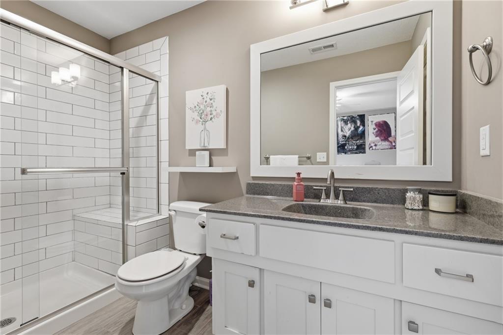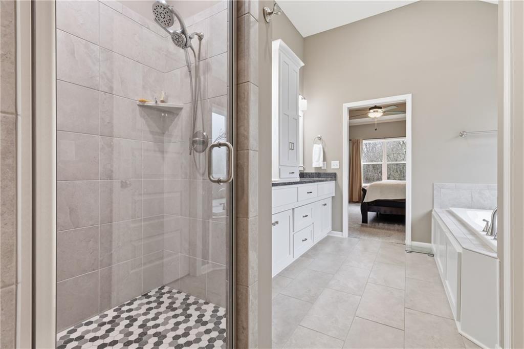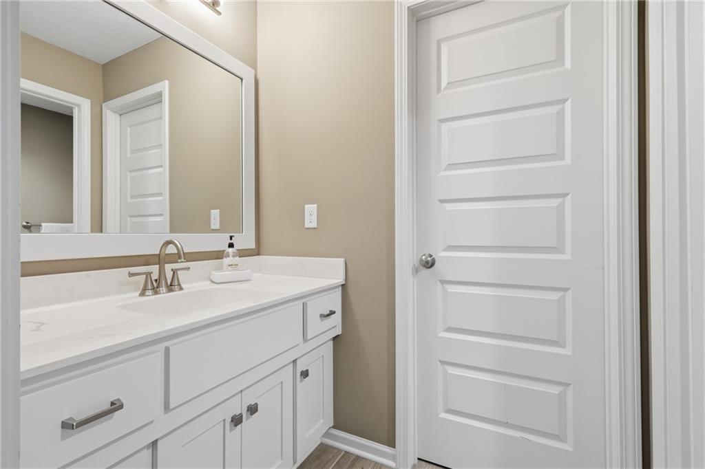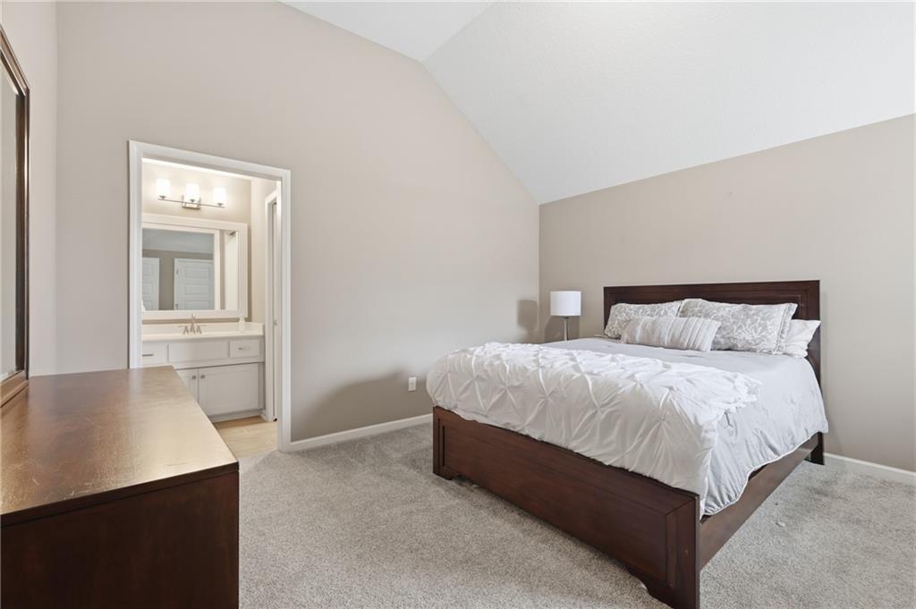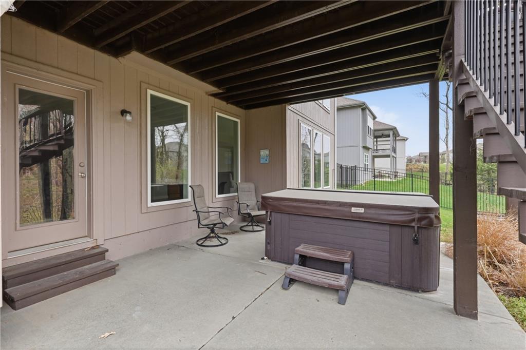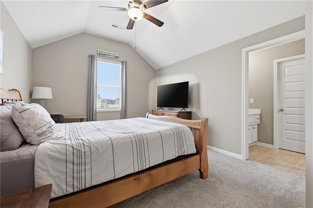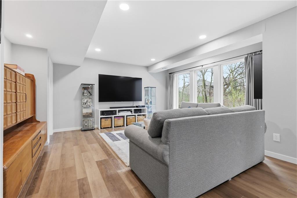 RARE 1.5 story, 5 br, 4 1/2 bath home in Chapel Ridge! Walk into soaring ceilings and windows with beautiful wooded views, light oak hardwood flooring, upgraded lighting, large stained island, upgraded vented hood, quartz and honed granite countertops, see-through gas fireplace from living to large outdoor covered deck, large pantry with pocket desk, large dining/eat-in kitchen. Primary suite with double vanity with tower storage, upgraded shower, and huge closet with conveniently attached laundry room. Upstairs has 3 large bedrooms all with walk-in closets, guest room with ensuite bath, and jack and jill bathroom with separate vanities. Beautifully finished walkout basement with huge rec room, 5th bedroom, full bathroom, wet bar with live edge wood/beverage fridge, ample unfinished storage, and under deck patio. Pristine 3 car garage, upgraded landscaping/retaining walls, metal fence. Come make it your dream home in highly sought after Chapel Ridge and Park Hill schools!