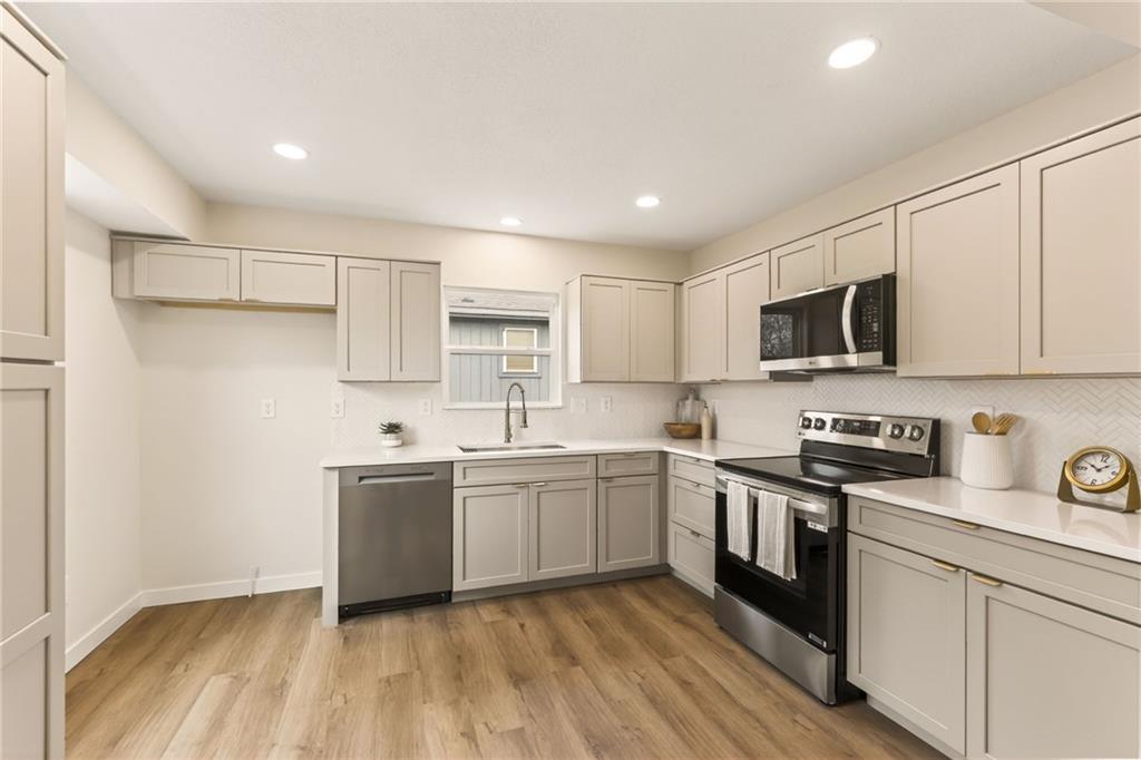 This stunning 4-bedroom, 3-bath home has been fully remodeled with updates throughout the entire house. The bedrooms are spread across the main floor and finished basement, offering a flexible layout for family, guests, or recreation. The basement also features a 5th nonconforming room, perfect for a home office, gym, or extra living space. The kitchen is completely updated with new beige shaker cabinets, quartz countertops, new appliances, and new flooring flows throughout the home. Other upgrades include a newer roof (2023), HVAC (2023), and water heater (2023), fresh interior and exterior paint, updated bathrooms, new windows, a refreshed deck, and a cozy electric fireplace. Set on a large, private lot with no rear neighbors, this home combines modern finishes, thoughtful updates, and a flexible floorplan. It is truly move-in ready.