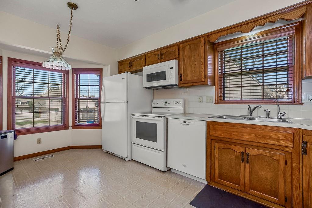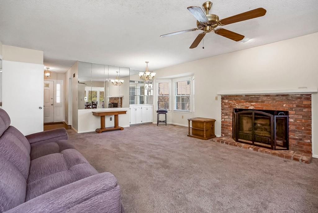 Well-maintained home offering comfortable main-level living in a clean, move-in ready space. The kitchen comes fully equipped with all appliances included, with laundry and essential amenities conveniently located on the main floor. The combined living and dining area features built-in storage and a cozy fireplace, creating a warm and functional gathering space. A second living area offers additional built-in storage and large windows that bring in natural light, making it ideal for relaxing, entertaining, or everyday living. You’ll find newer carpet on the main level and a water heater installed in 2023, along with a built-in intercom system that adds a unique touch of character. Additional features include a central vacuum system, whole-home humidifier, and air purifier. Tucked at the end of a cul-de-sac and conveniently located near major shopping, dining, and easy highway access, this home offers the perfect balance of comfort and convenience.