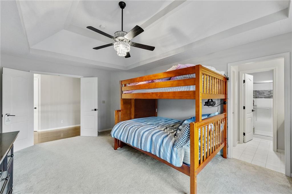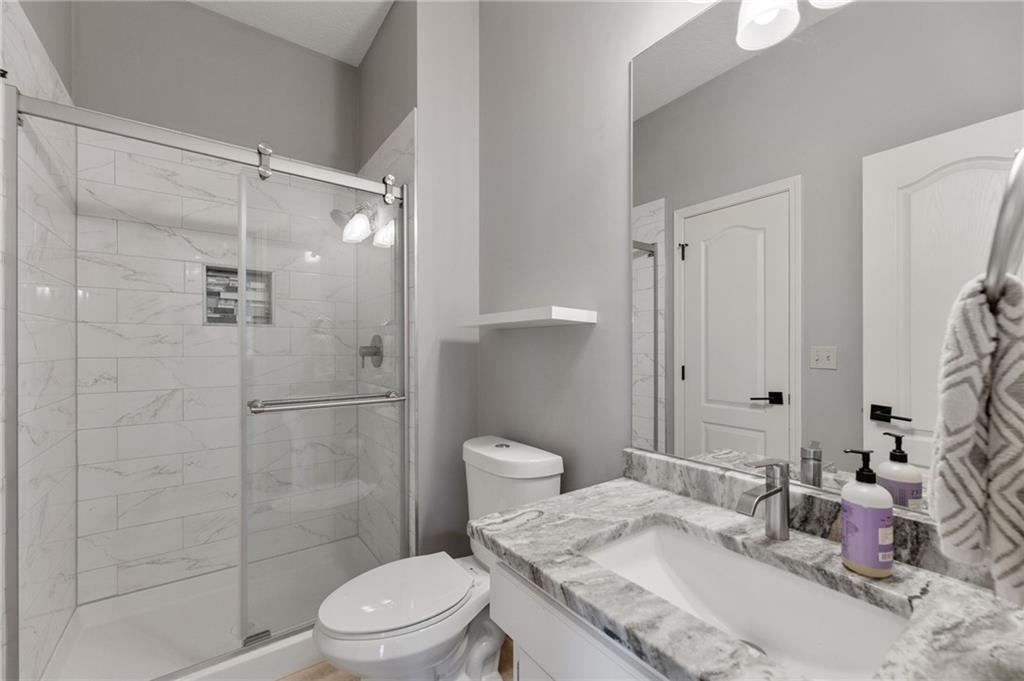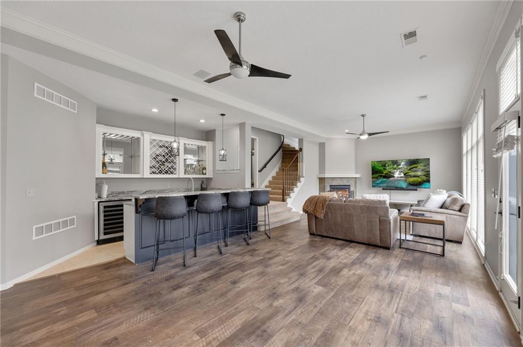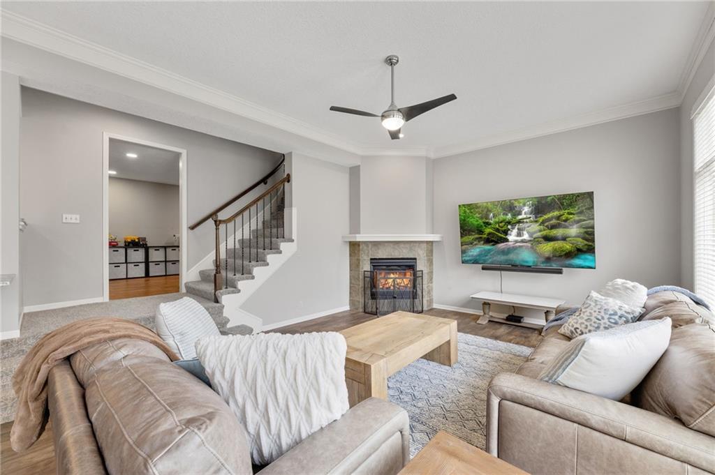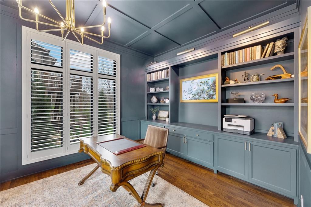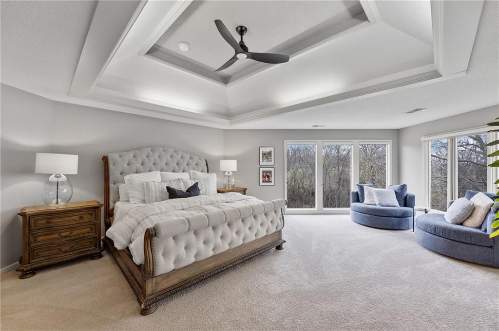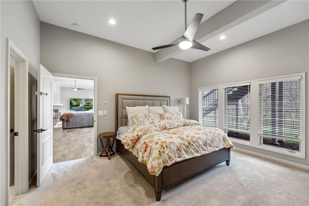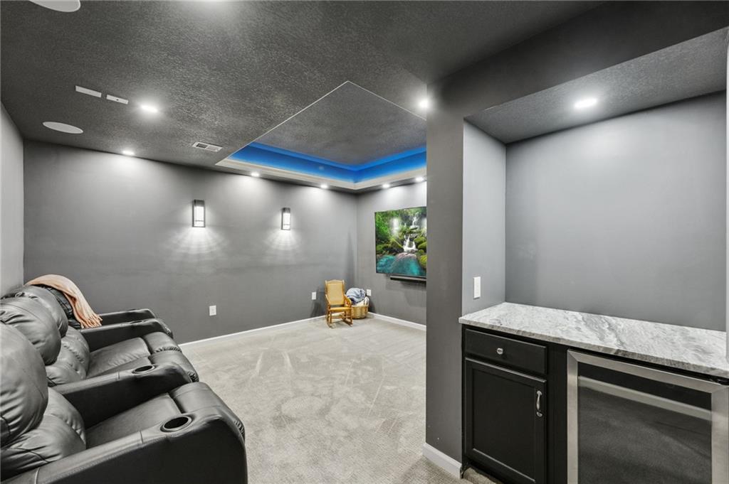 Tucked at the end of a quiet cul-de-sac in the coveted Pavilions neighborhood, this stunning 5-bedroom home delivers the lifestyle buyers dream about. Double doors and a beautiful curved walkway sets the tone before you even step inside — and from there, every detail delivers. The soaring kitchen and oversized island are made for gathering, while the custom designed office, mudroom and walk in pantry are an organizers dream. Upstairs, the loft offers flexible space for work or play, and the primary suite is nothing short of a retreat — featuring a spa-worthy soaker tub, a cozy fireplace, and a closet that rivals most bedrooms. Whether sipping your morning coffee and watching the sunrise above the trees or enjoying a cozy fireside conversation, you won’t want to leave. The finished lower level goes above and beyond with a custom bar, full bedroom with ensuite, dedicated theater, exercise room, and play room. Step outside and breathe — private, treed views from every rear window and a gorgeous deck make you forget the world exists. Community pool, cul-de-sac privacy, and all the space you’ve been waiting for. Welcome home!