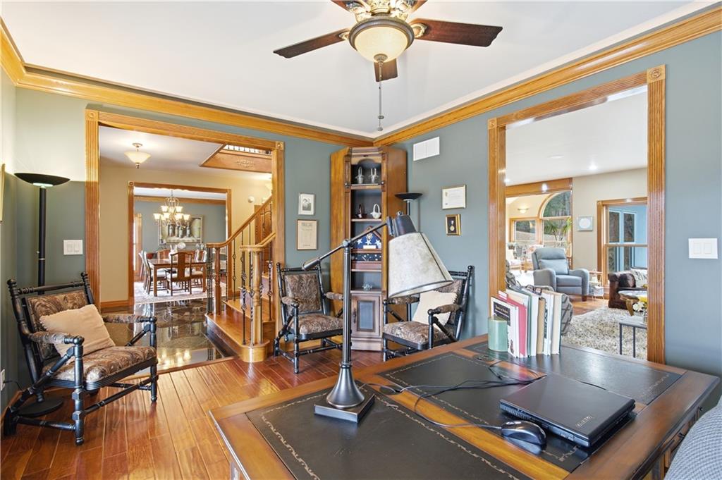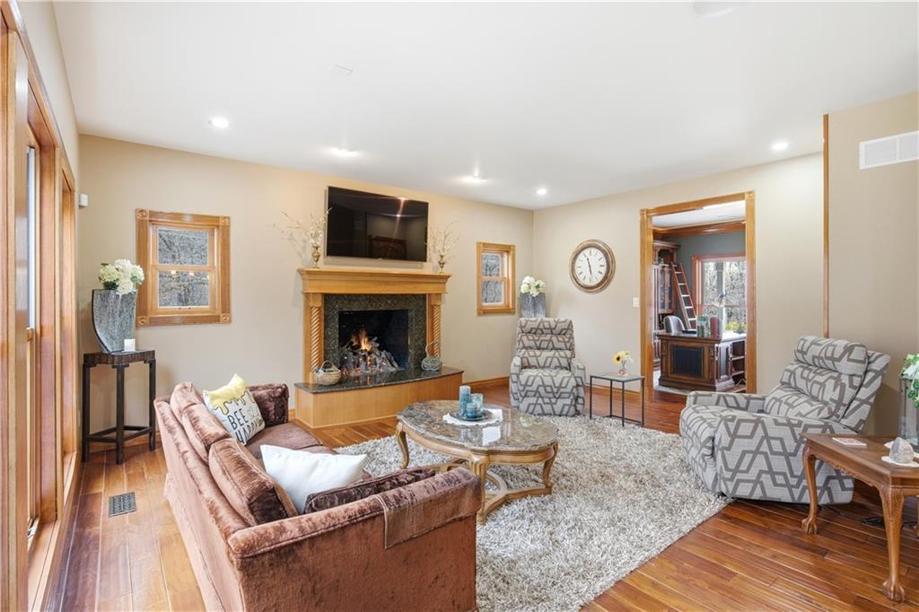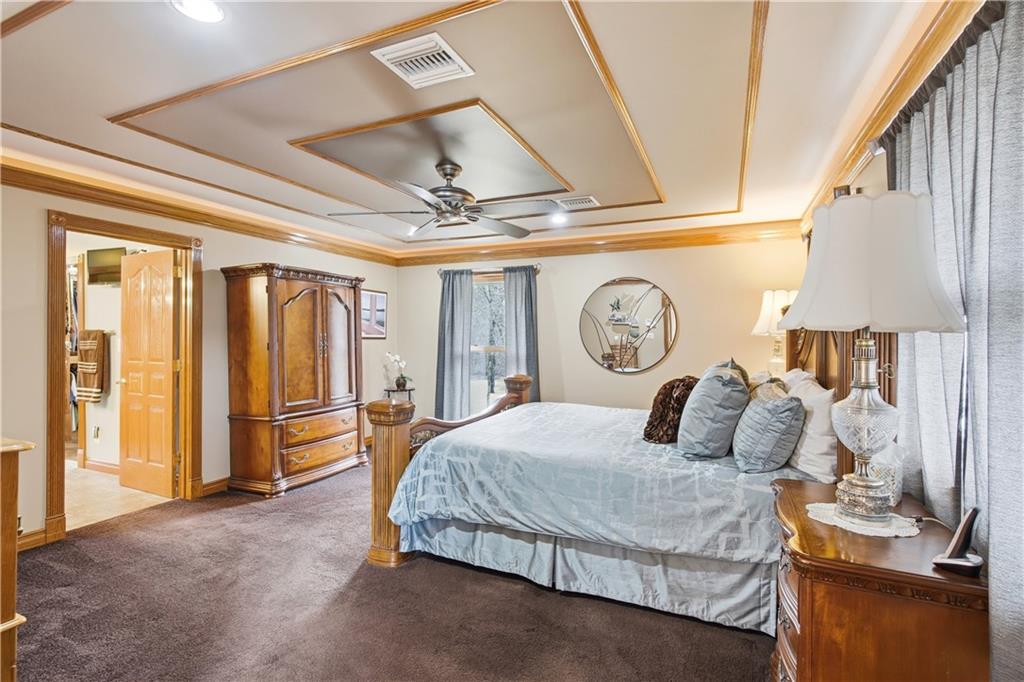 Welcome to your Dream Retreat in Columbia, Missouri! Nestled on 26 breathtaking acres, this one-of-a-kind property offers the perfect balance of luxury living and outdoor recreation. The land features a stocked private lake complete w/ islands and bridges, creating a stunning centerpiece that feels like your own private resort. Property is loaded w/ deer and turkey, making it an exceptional retreat for wildlife lovers and outdoor enthusiasts. The 7,500 sq ft custom home has been meticulously cared for and is filled w/ high-end features throughout. From the granite entryway, you’ll appreciate the craftsmanship and attention to detail, including hand-scraped teak floors, a stunning curved staircase, and 2 fireplaces. The home offers 4 spacious bedrooms and 5 bathrooms, along with a quiet study, large office space, abundant storage, and an attached three-car garage. The fantastic kitchen is built for both everyday living and entertaining, featuring a Wolf gas stove, high-end appliances, a hidden pantry, and generous storage space throughout. Just off the main living area, the sunroom provides the perfect place to relax and watch the wildlife, overlooking the incredible scenery this property has to offer. The luxurious master suite includes a spa-like bathroom equipped with heated floors, TV, coffee maker, and refrigerator, as well as a large walk in closet. The finished basement is designed for entertaining, featuring a spacious entertainment area along with a bar and small kitchen, making it the ideal place to host guests, watch the big game, or unwind after a long day. Outside, the property also includes a large two-story outbuilding with potential living quarters, providing endless possibilities for guests, a workshop, or additional storage. This rare 26 +/- acre estate truly offers the best of both worlds - a private retreat with incredible scenery, wildlife, and recreation located just 7 miles from downtown Columbia. Opportunities like this are incredibly rare!