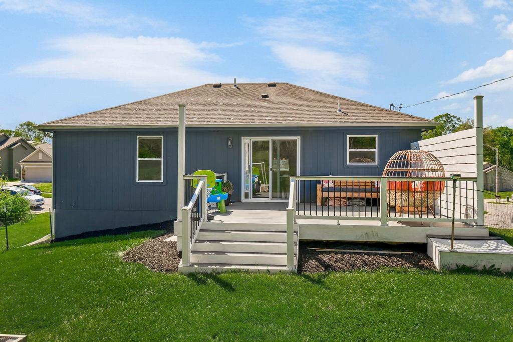 NEW ROOF COMING SOON! Scheduled for installation in just a few weeks. Welcome home to this beautifully maintained like new 2019 build in the desirable KC Northland! Ideally located with quick access to major highways, shopping, dining, and within walking distance to all schools, this home offers both convenience and comfort in a quiet neighborhood setting. Situated on a large, private lot, the outdoor space is perfect for relaxing or entertaining—featuring a Trex deck added in 2023 and a fenced garden area ready for your personal touch. Inside, you’ll find an open eat-in kitchen with stainless steel appliances, complemented by custom light fixtures that add style throughout the home.Thoughtful upgrades continue with custom bathroom vanities, a finished laundry room, and a garage designed for functionality—complete with added lighting and overhead storage, ideal for a workshop or extra organization. This move-in ready home blends modern features with everyday practicality—don’t miss your chance to make it yours! OPEN HOUSE Saturday 4/25 11:00am-1:00pm and Sunday 4/26 1:00pm-3:00pm