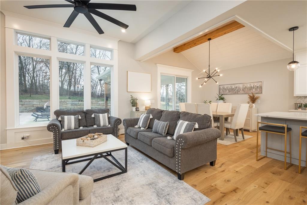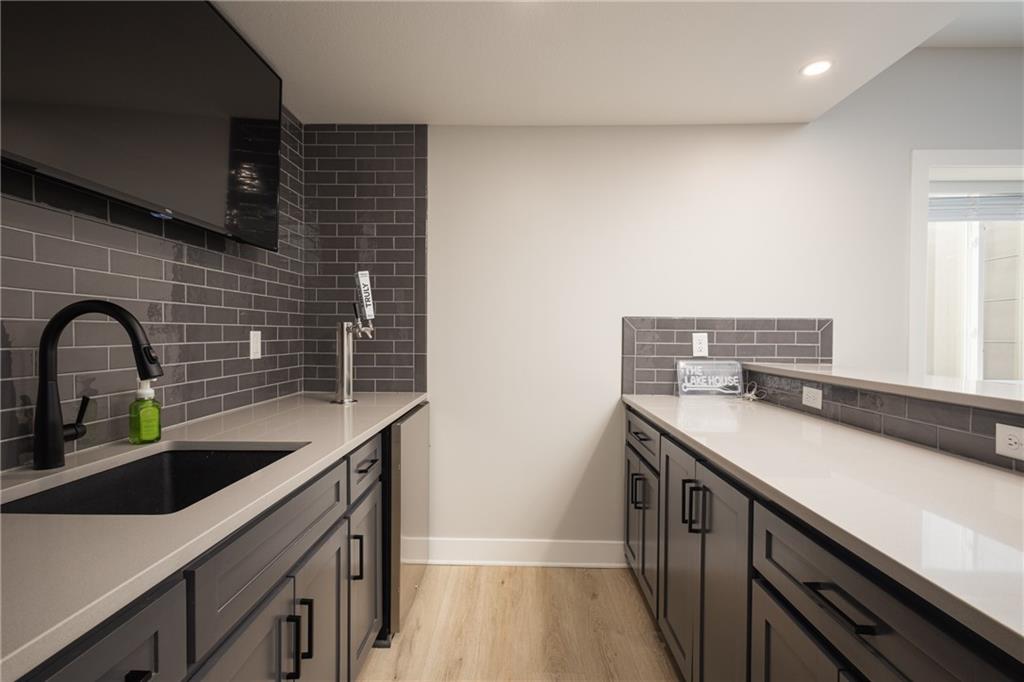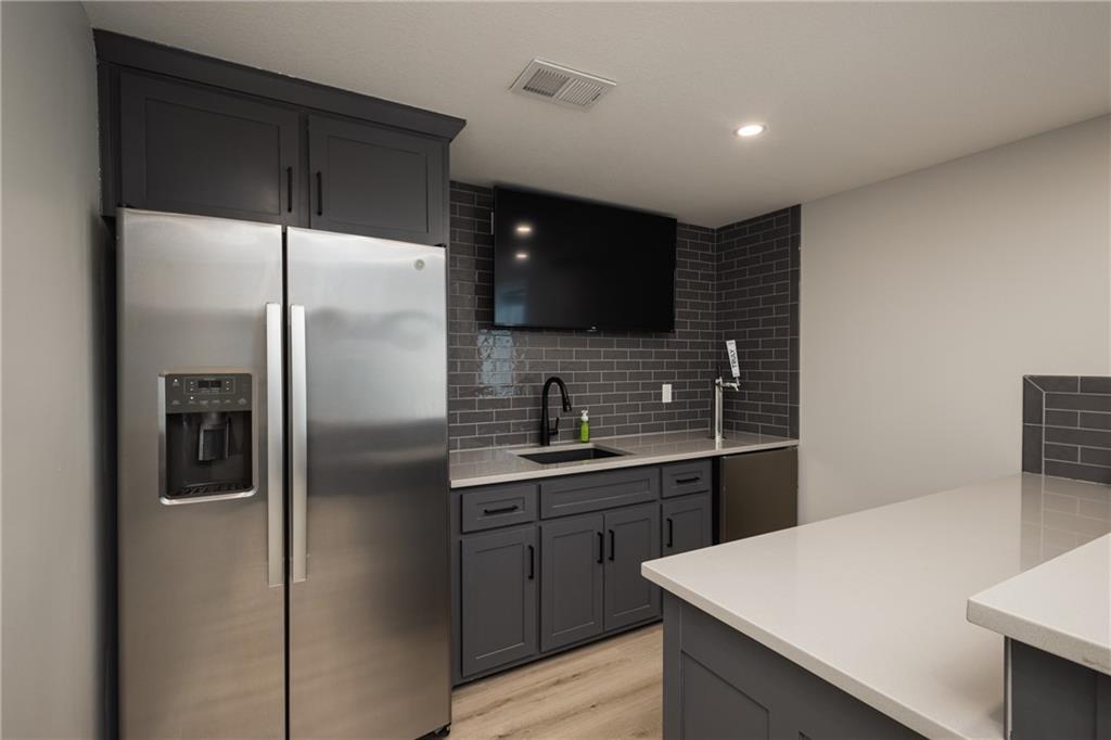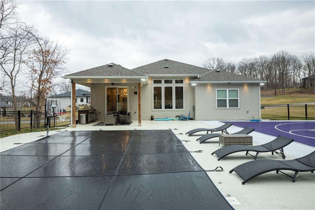 Experience resort-style living in this stunning 4.5-year-old reverse ranch with 4 bedrooms & 3 bathrooms with upscale finishes and exceptional amenities throughout. Designed for both everyday comfort & elevated entertaining, this home truly has it all. Step outside to your private oasis featuring a heated saltwater/chlorine pool complete with a built-in basketball goal, expansive outdoor kitchen with premium Blaze appliances & a half-court sport basketball court—perfect for hosting or relaxing in style. Inside, the main level showcases real 5” hardwood floors & a chef’s kitchen outfitted with top-of-the-line Café appliances, including an Advantium oven. A spacious walk-in butler’s pantry provides additional cabinetry & a beverage refrigerator for ultimate convenience. The finished basement is an entertainer’s dream, featuring a full-size bar with a built-in kegerator. The luxurious primary suite is a true retreat, boasting heated bathroom floors, dual shower heads including a rain feature, tall ceilings with a marble accent wall & a TV positioned above the soaking tub for added relaxation. The oversized walk-in closet includes a built-in dresser, custom shelving, and three-tiered hanging rods. Additional highlights include a functional mudroom off the garage, enhanced interior and exterior lighting, generously sized bedrooms with walk-in closets, and premium finishes throughout. Situated on nearly ¾ of an acre, the property offers a picturesque setting with mature trees, green space, and a striking stone wall. Enjoy exclusive access to the lake with a community dock slip and available lift lease, plus the added benefit of 2026 HOA fees covered for the new owner. The neighborhood enhances the lifestyle with amenities including a park, walking trails, pickleball and tennis courts, a yacht club & an upcoming community pool & clubhouse. Don’t miss this rare opportunity to own a home that perfectly blends luxury, recreation, and tranquility. *Owner/Agent*