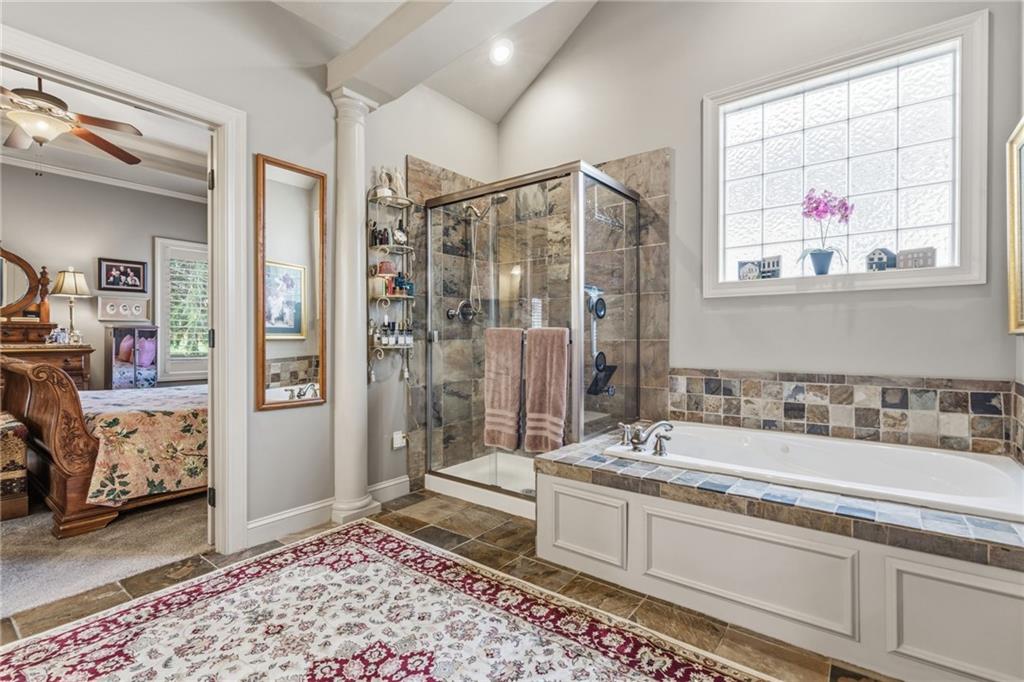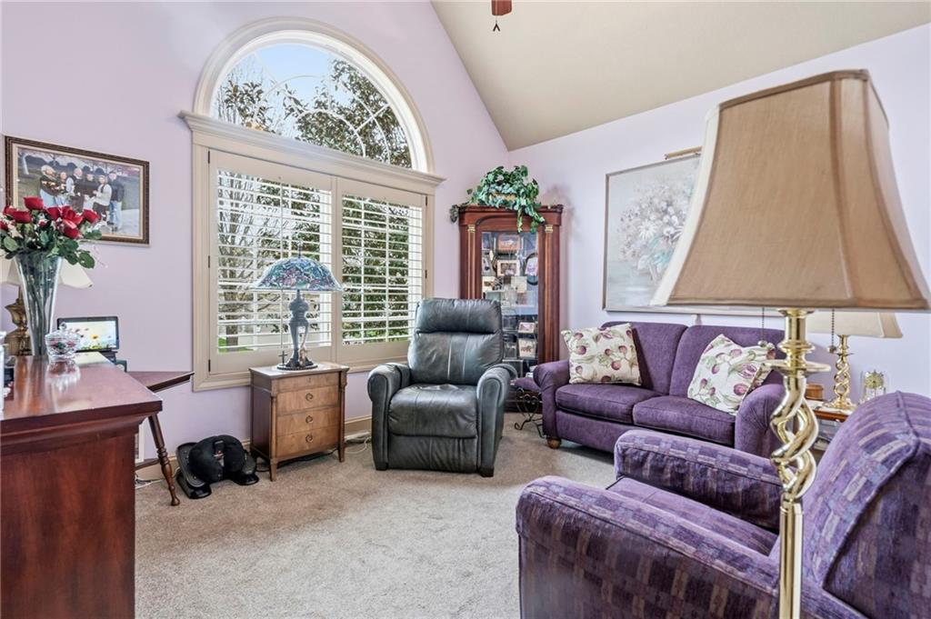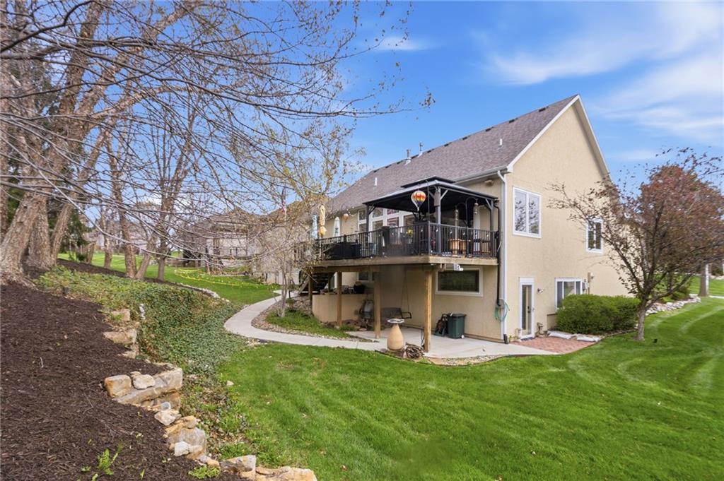 Welcome to this beautifully maintained reverse 1.5-story home offering true maintenance-provided living and an exceptional blend of comfort and style. From the moment you step inside, you’ll appreciate the slate tile entry flanked by elegant columns that open into a spacious living area featuring a cozy fireplace and custom built-ins—perfect for both relaxing and entertaining. The main level showcases a light-filled dining area and a well-appointed kitchen complete with granite countertops, stainless steel appliances, a gas convection oven, pull-out shelving, and built-in storage. Floor-to-ceiling windows frame a peaceful, tree-lined view, bringing the outdoors in and filling the space with natural light. Just off the kitchen, step out onto the partially covered, gated deck—ideal for enjoying morning coffee or evening gatherings. The oversized primary suite offers a private retreat with a spa-like, Roman-style bathroom featuring a vaulted ceiling, slate tile flooring, double vanity, jetted tub, separate shower, and a large walk-in closet, along with a private toilet room. The main level also includes a convenient laundry room with built-ins and direct access to the garage. The finished lower level expands your living space with a comfortable family room, third bedroom with a walk-in closet, a full bathroom, and a fourth bedroom—perfect for guests, hobbies, or a home office—plus an unfinished storage area for all your extras. All of this in a prime location close to highways, shopping, dining, and entertainment—making everyday living both easy and convenient.