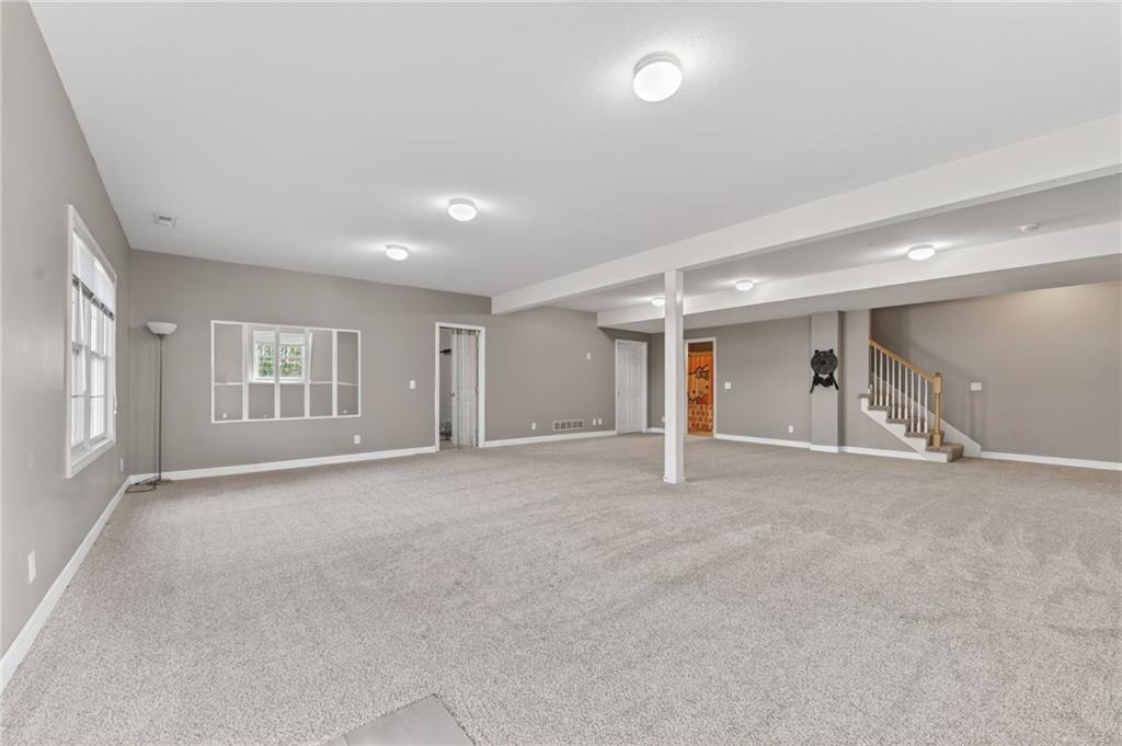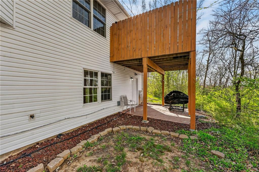 Welcome to this beautifully updated home nestled in a prime Platte City location! Designed with an open-concept layout, this home offers the perfect blend of comfort and functionality, ideal for both everyday living and entertaining! Enjoy newer interior paint and carpet throughout, along with newly refinished hardwood floors in the kitchen and entryway that adds warmth and charm. The kitchen is a standout, featuring granite countertops, custom wood cabinetry, and abundant counter space and storage. The main-level primary suite offers a relaxing retreat with vaulted ceilings, a spacious walk-in closet, and a large en suite bathroom complete with a double vanity. Two additional generously sized bedrooms —one on the main level and one in the lower level—both include large closets for ample storage. The fully finished walk-out basement provides a massive living area, perfect for hosting gatherings or creating additional living space. Step outside to a large deck overlooking a private, tree-lined yard—ideal for enjoying peaceful mornings or evening get-togethers. Located in a maintenance-provided community on a quiet cul-de-sac, this home also offers a fantastic location with highly regarded schools. This one truly has it all!